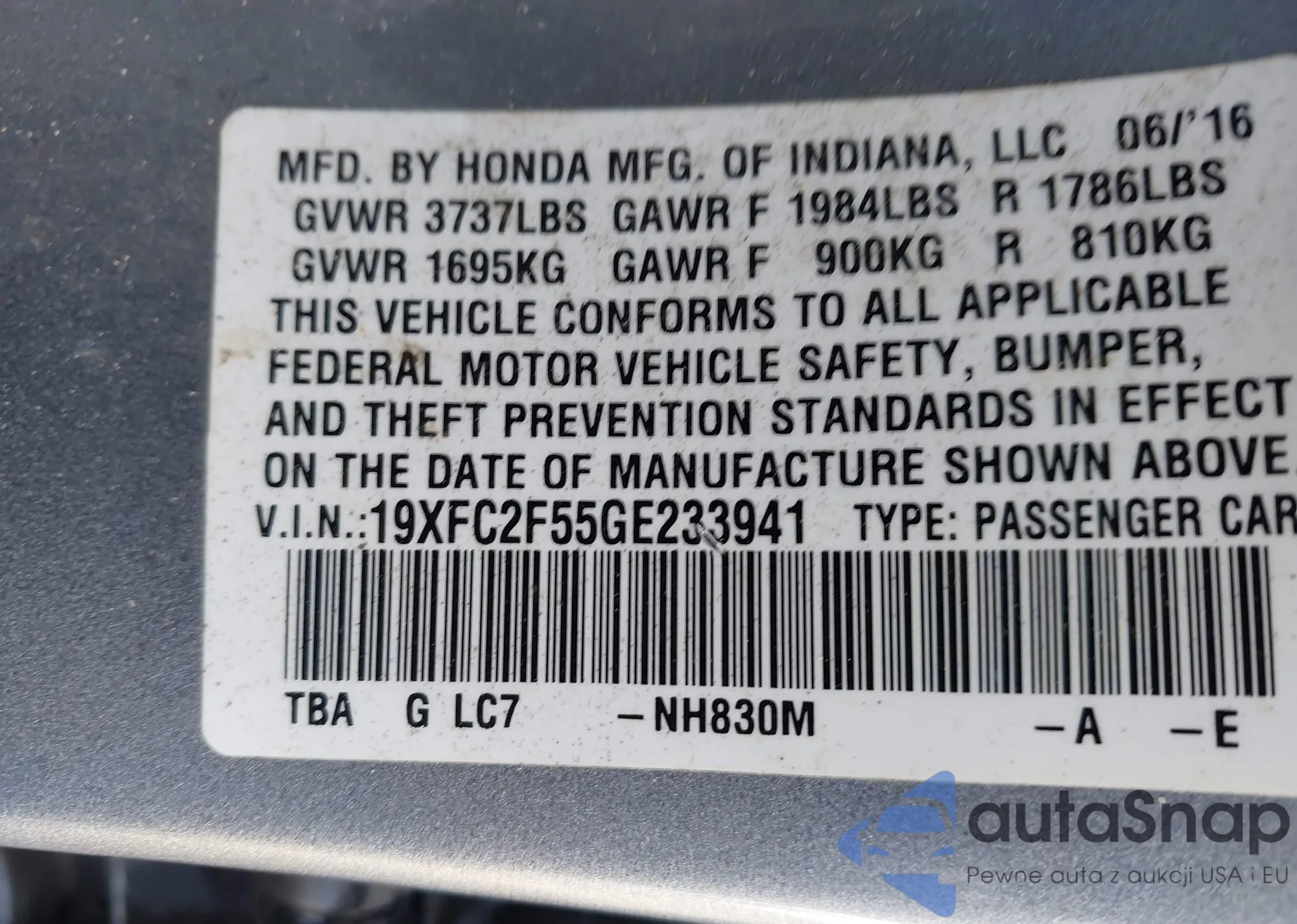 LOT: 44210869 VIN: 19XFC2F55GE233941