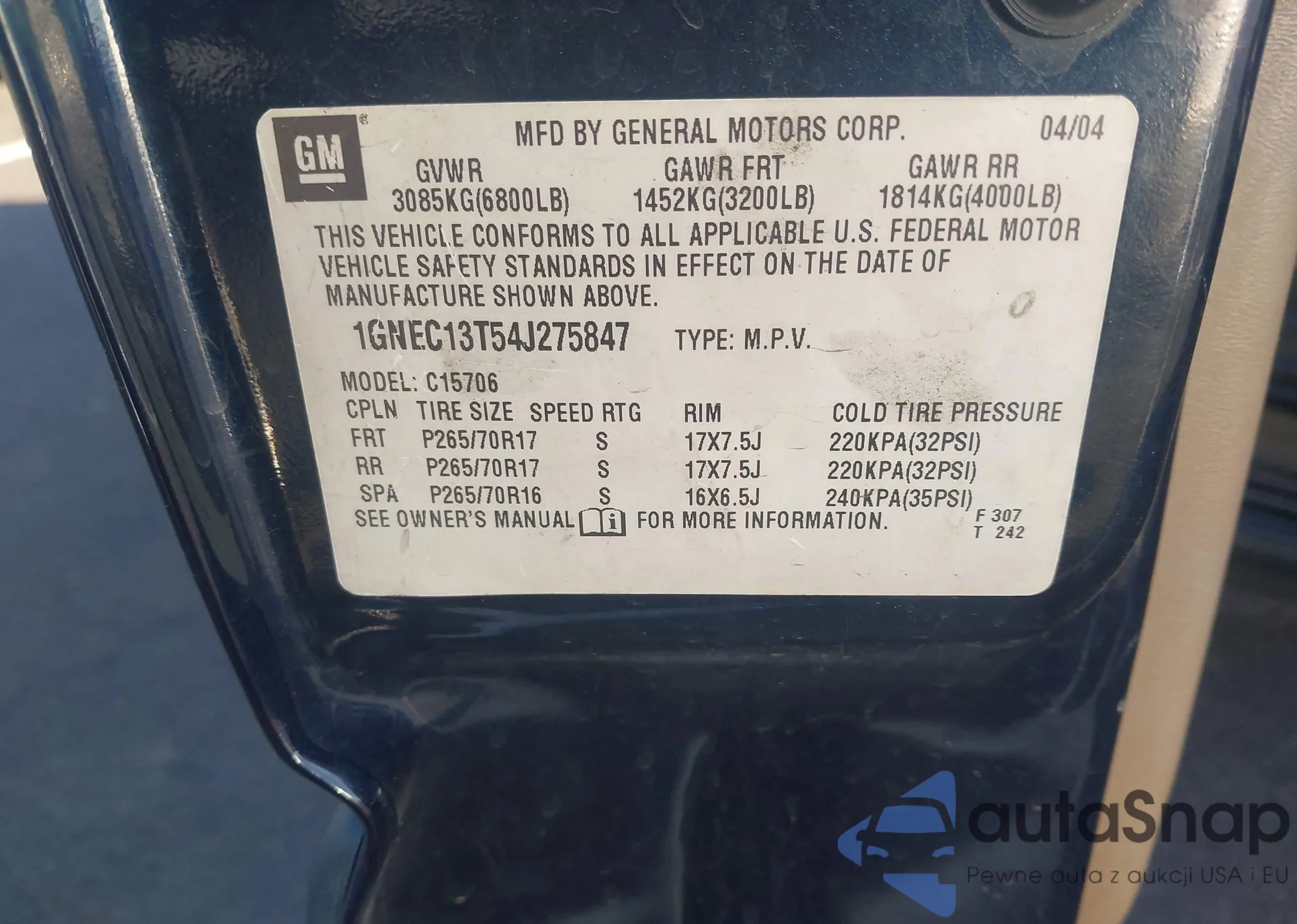 • VIN 1GNEC13T54J275847