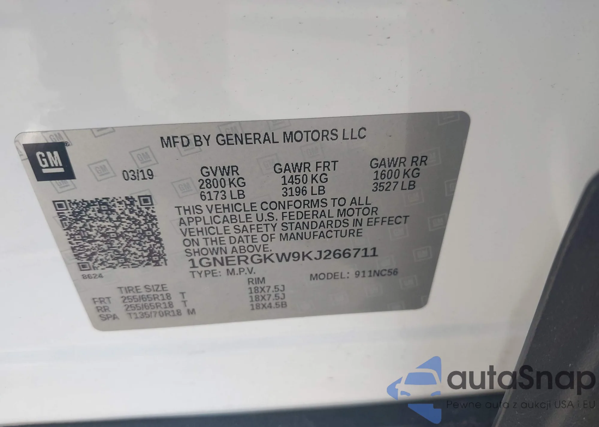 LOT: 43960997 VIN: 1GNERGKW9KJ266711