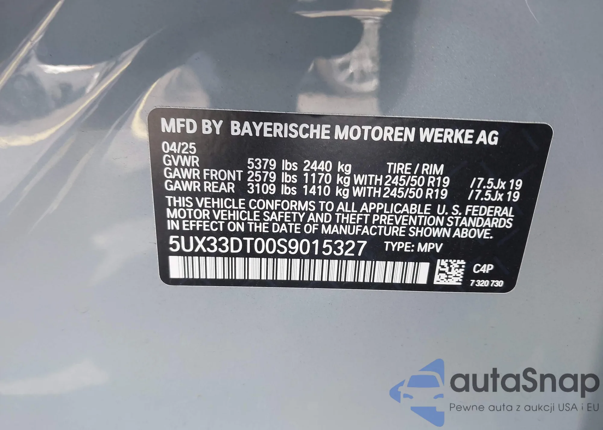 • VIN 5UX33DT00S9015327