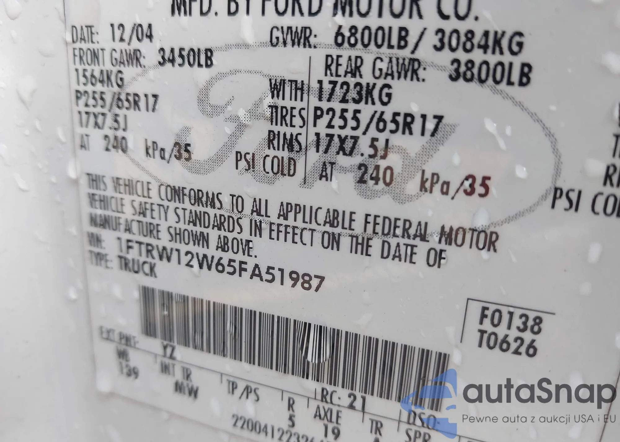 • VIN 1FTRW12W65FA51987