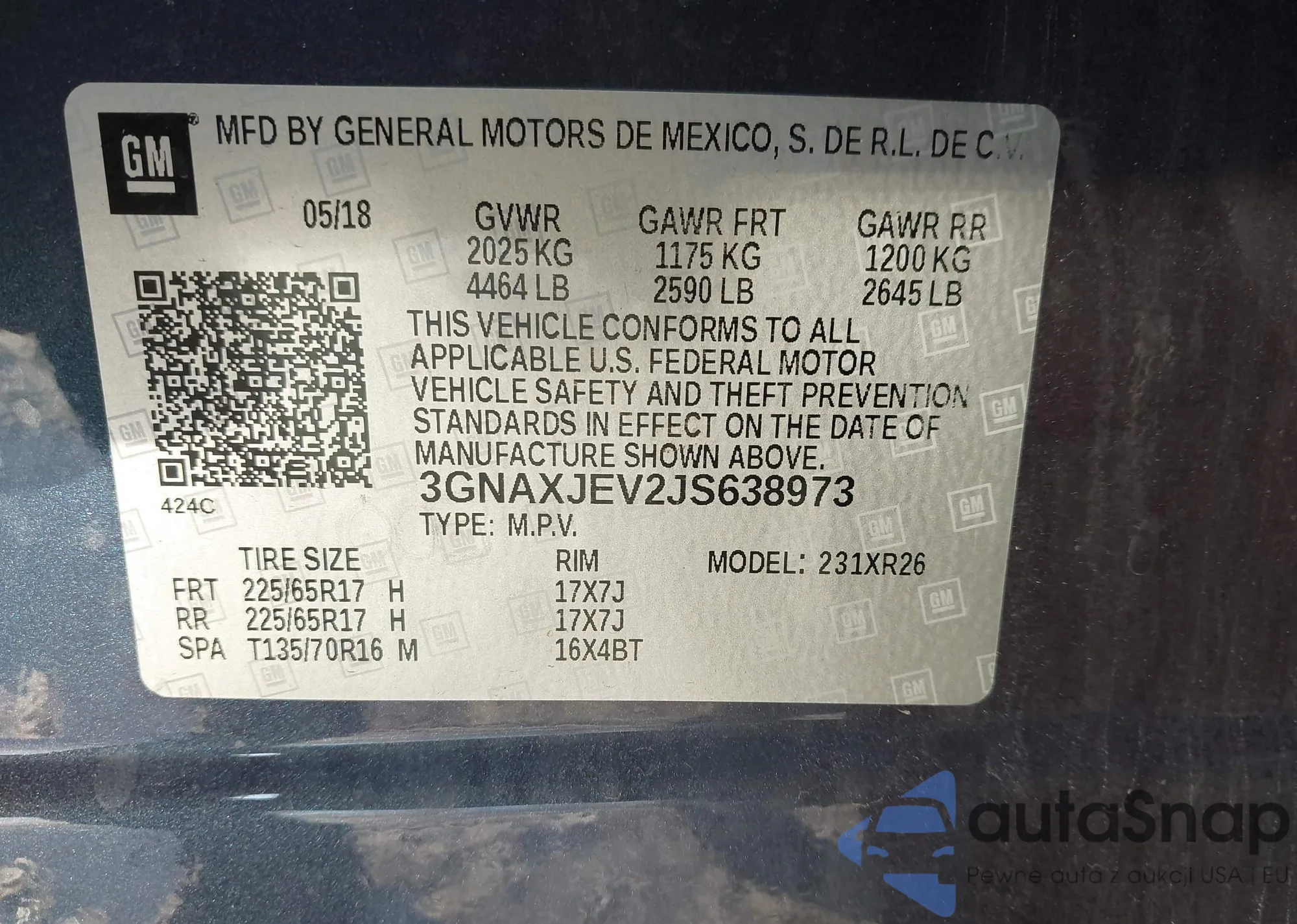 • VIN 3GNAXJEV2JS638973