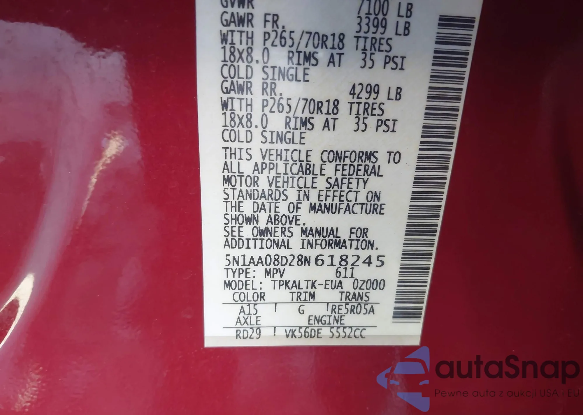 • VIN 5N1AA08D28N618245