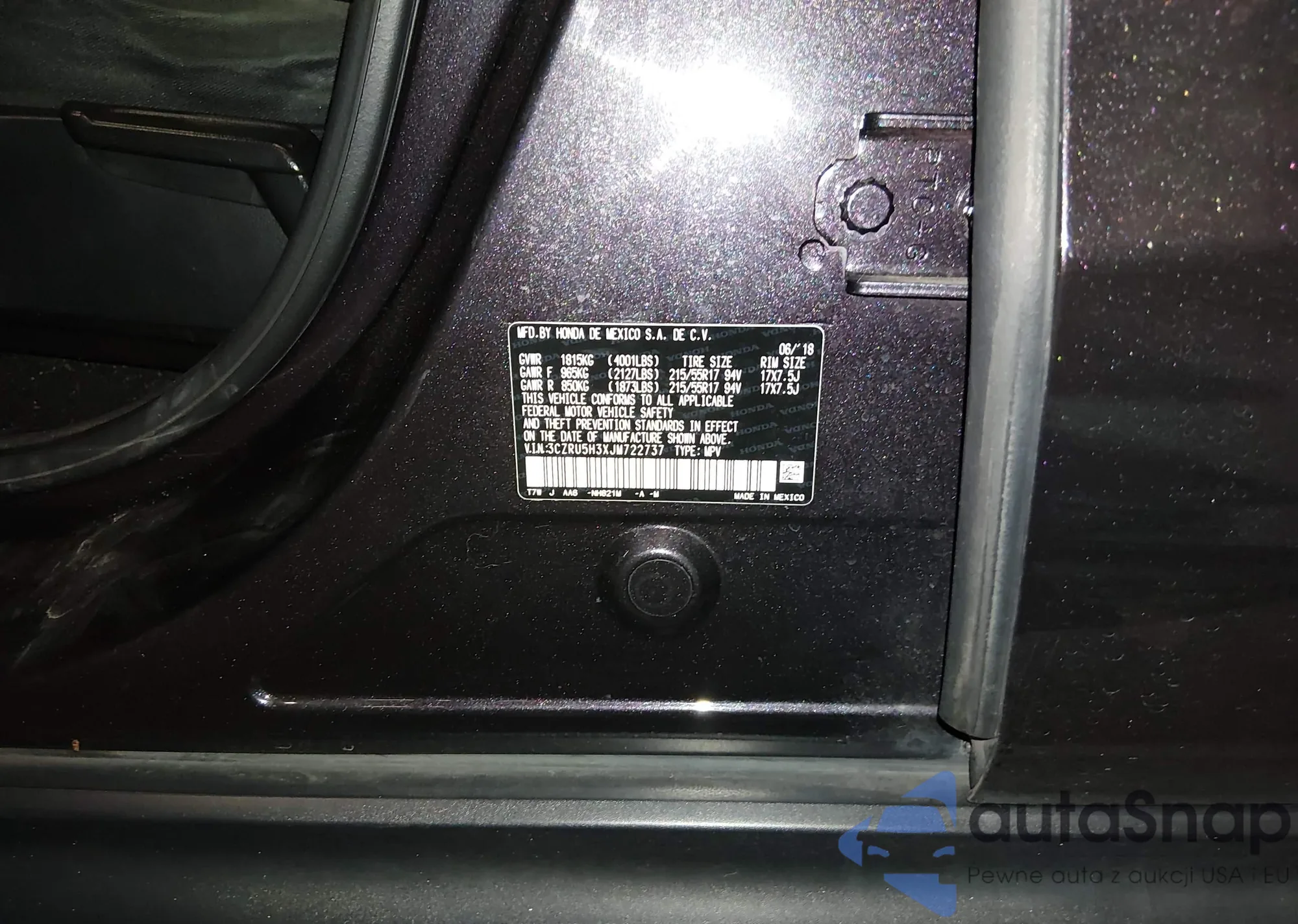 • VIN 3CZRU5H3XJM722737