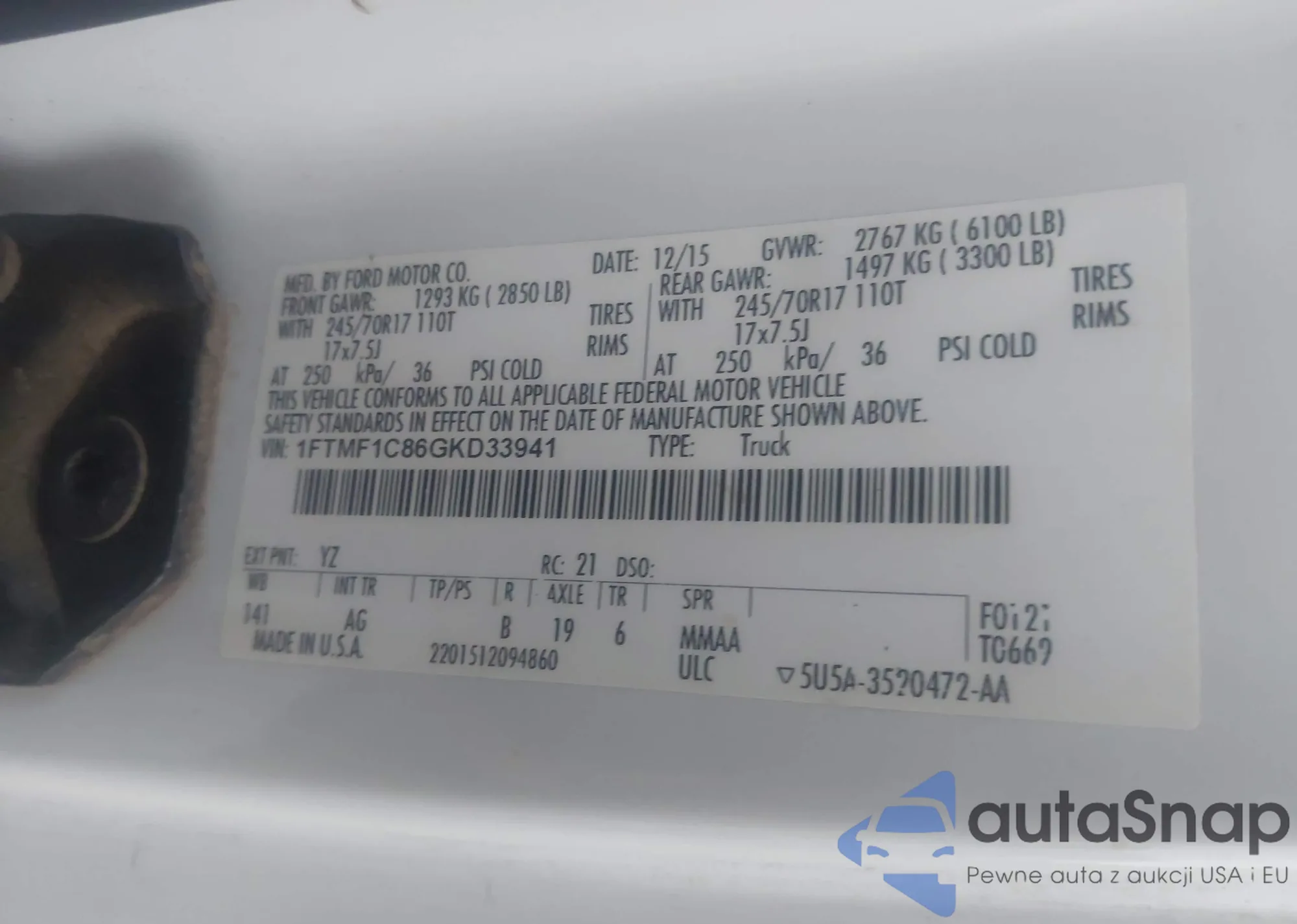 • VIN 1FTMF1C86GKD33941