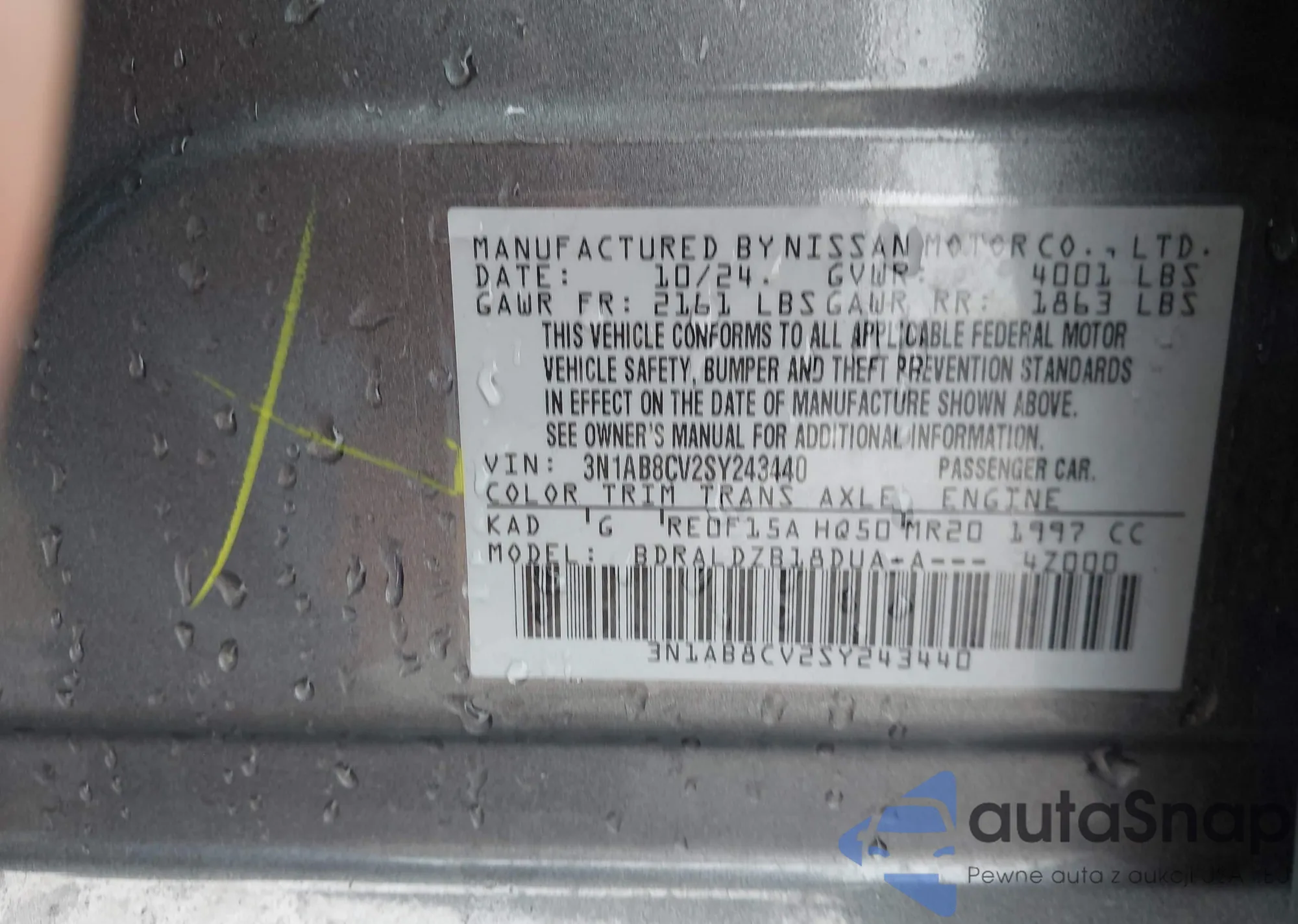 • VIN 3N1AB8CV2SY243440