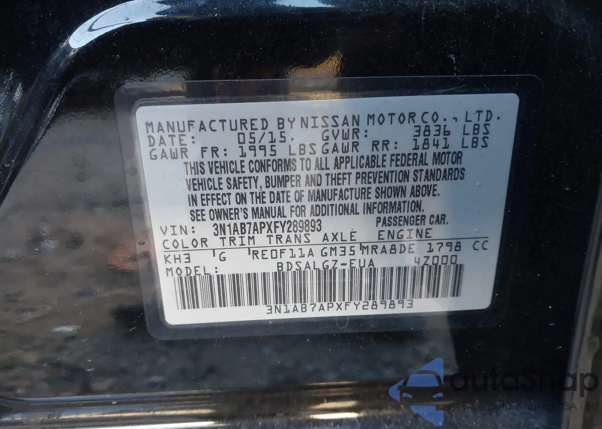 LOT: 44177863 VIN: 3N1AB7APXFY289893