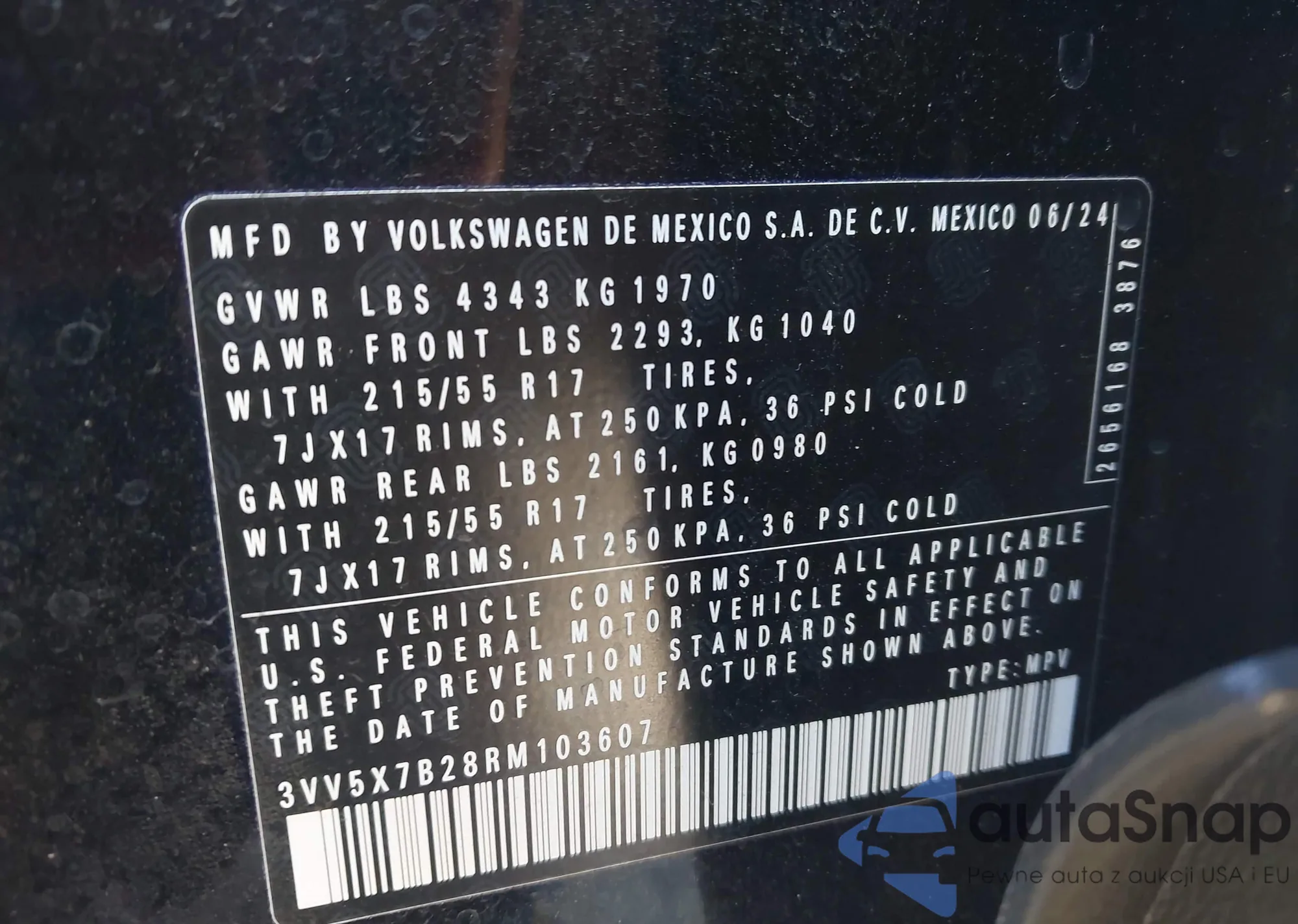 • VIN 3VV5X7B28RM103607