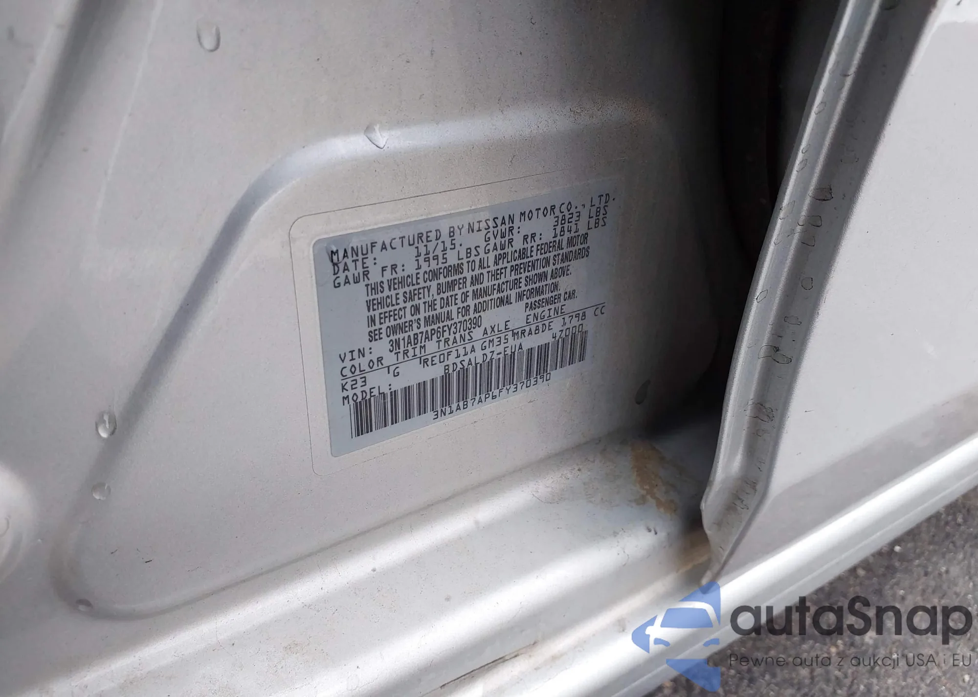LOT: 44190864 VIN: 3N1AB7AP6FY370390