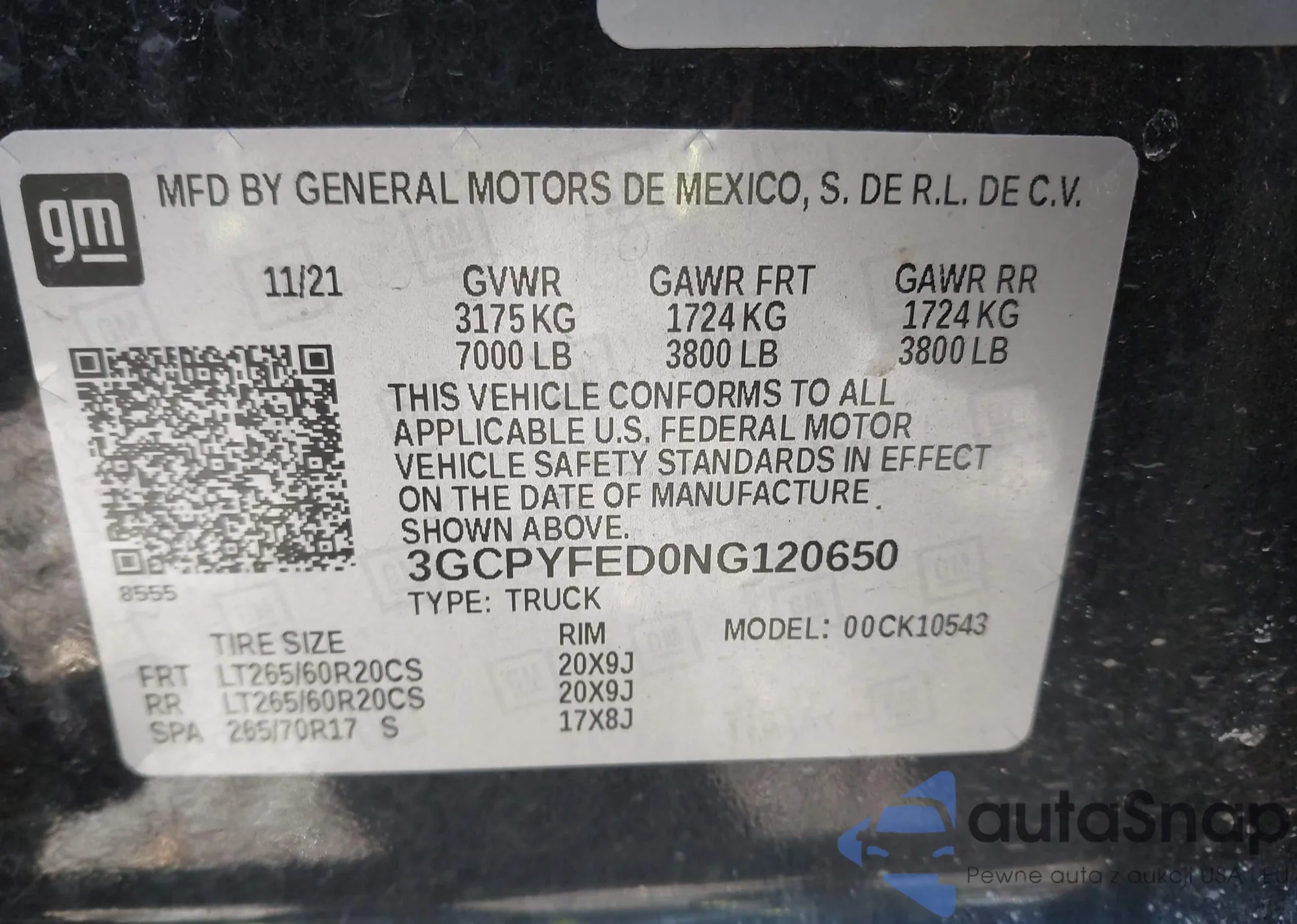 • VIN 3GCPYFED0NG120650