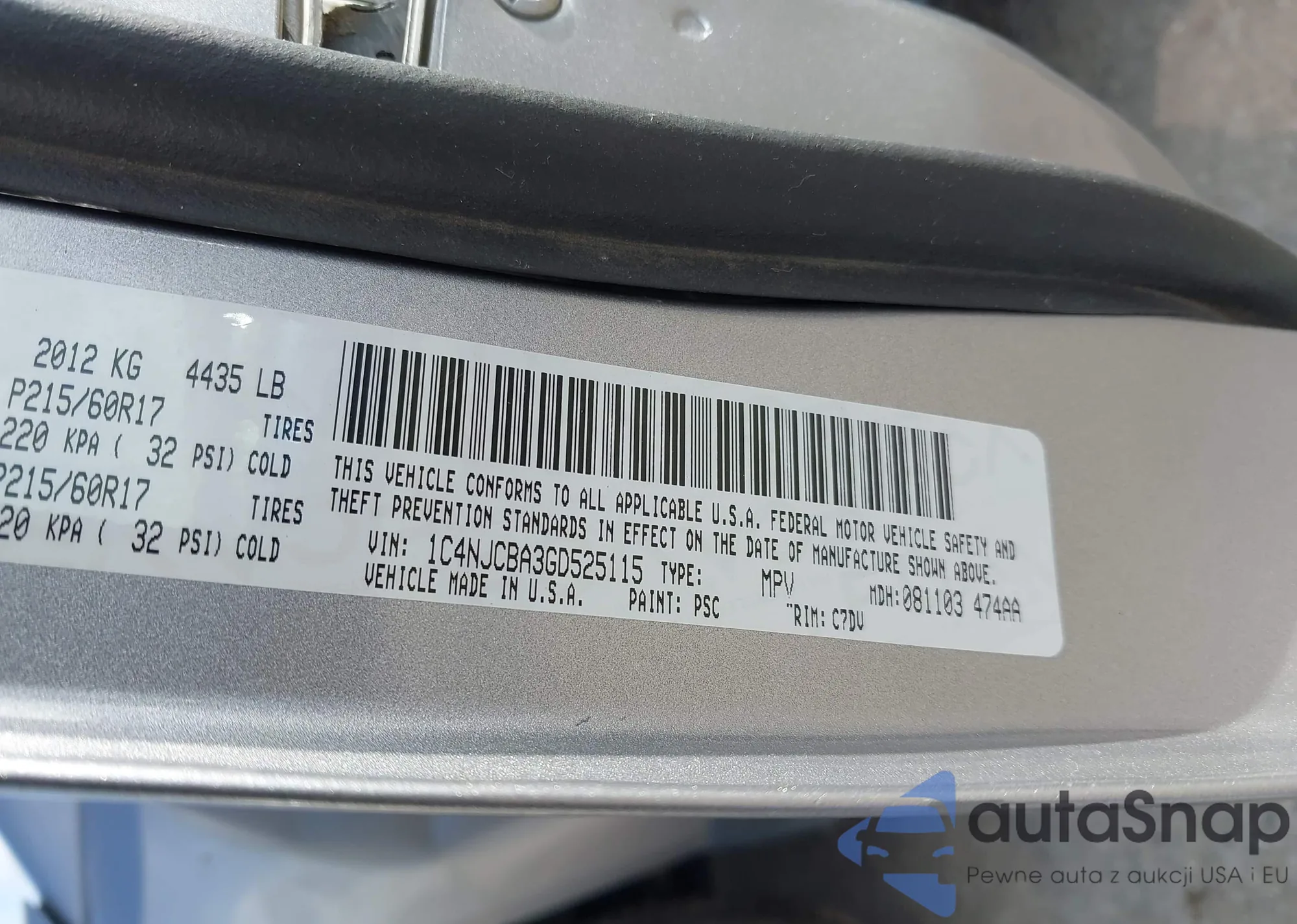 • VIN 1C4NJCBA3GD525115