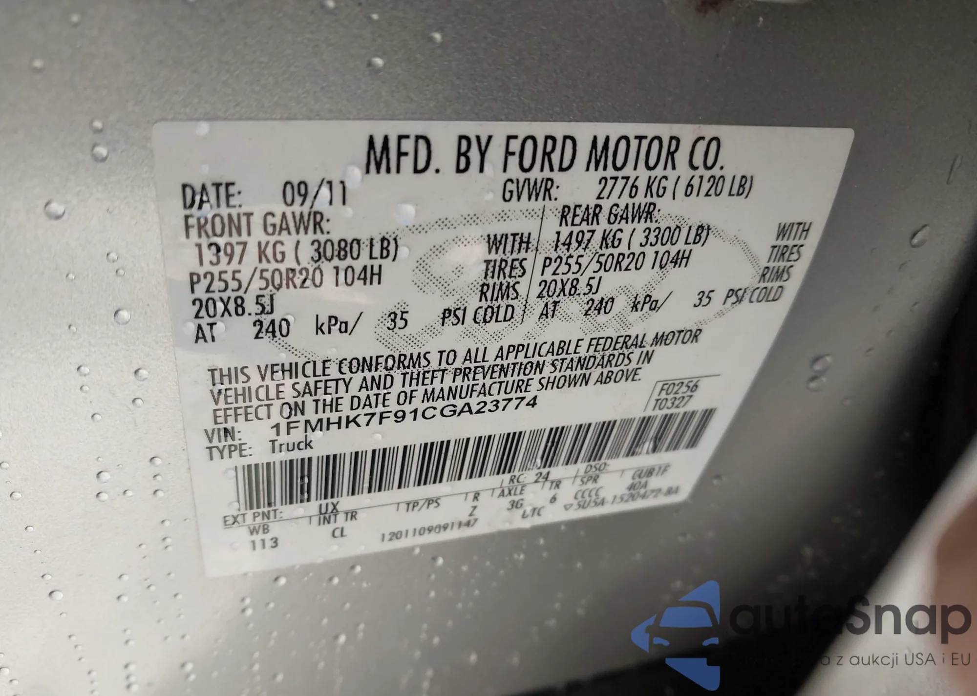 • VIN 1FMHK7F91CGA23774