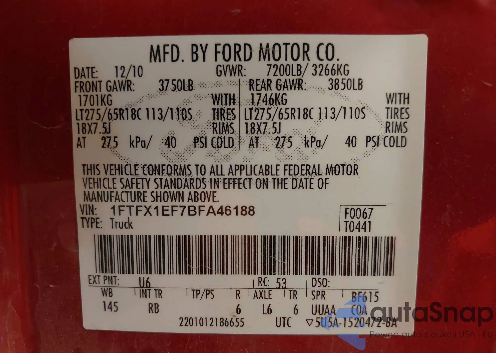 • VIN 1FTFX1EF7BFA46188
