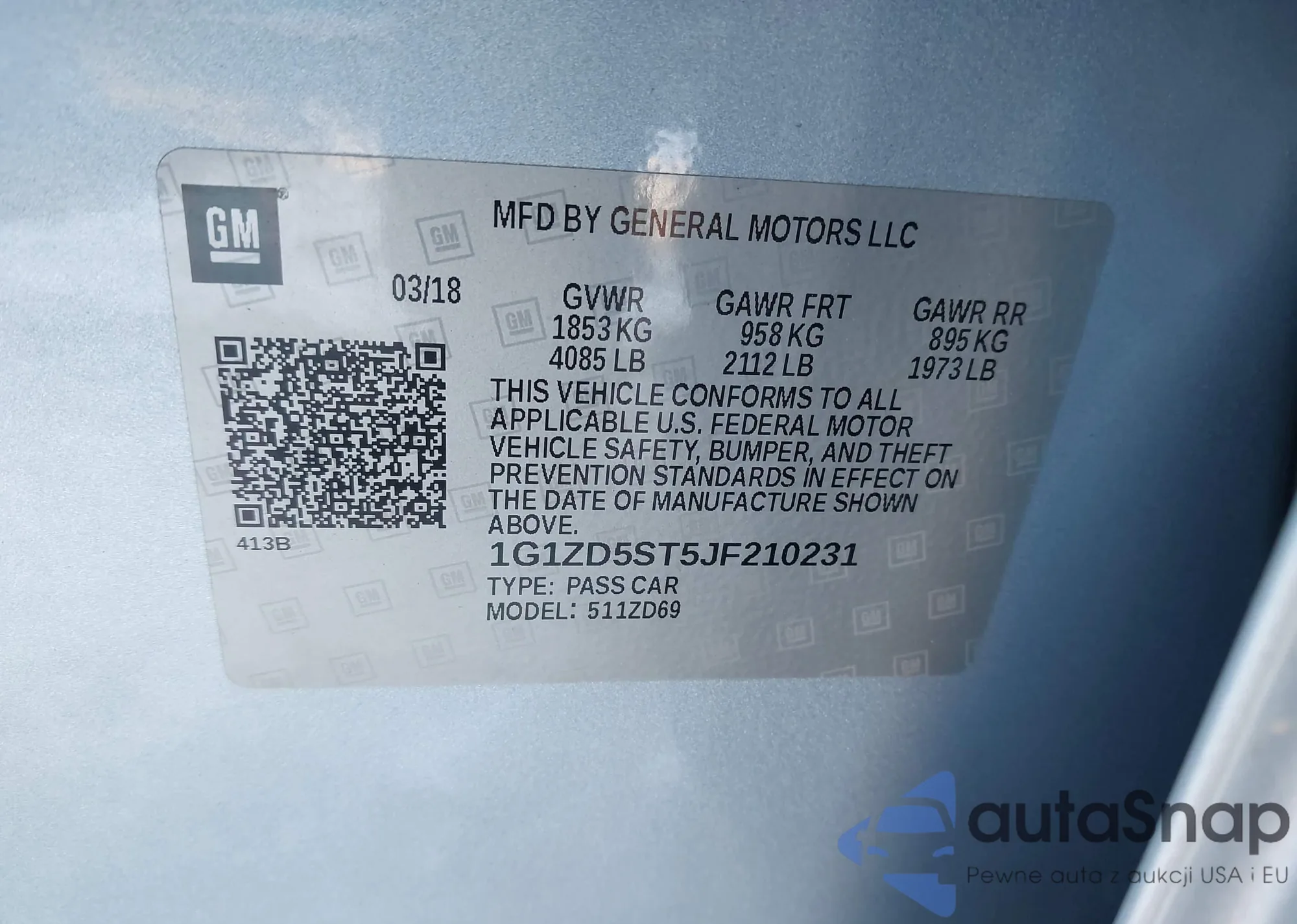 LOT: 43820325 VIN: 1G1ZD5ST5JF210231