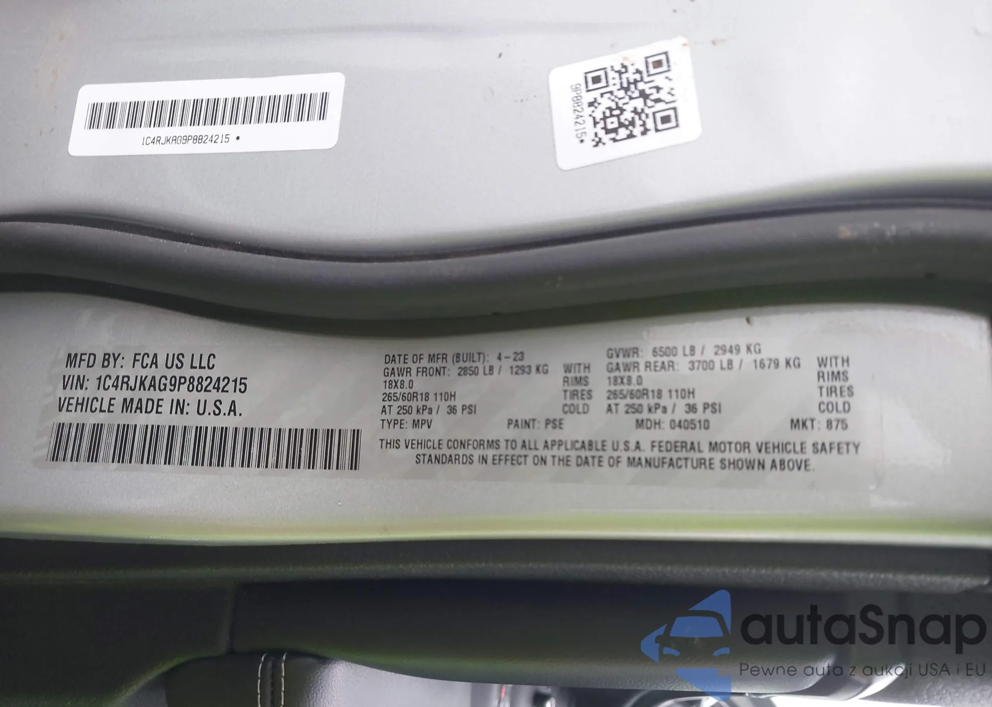 • VIN 1C4RJKAG9P8824215