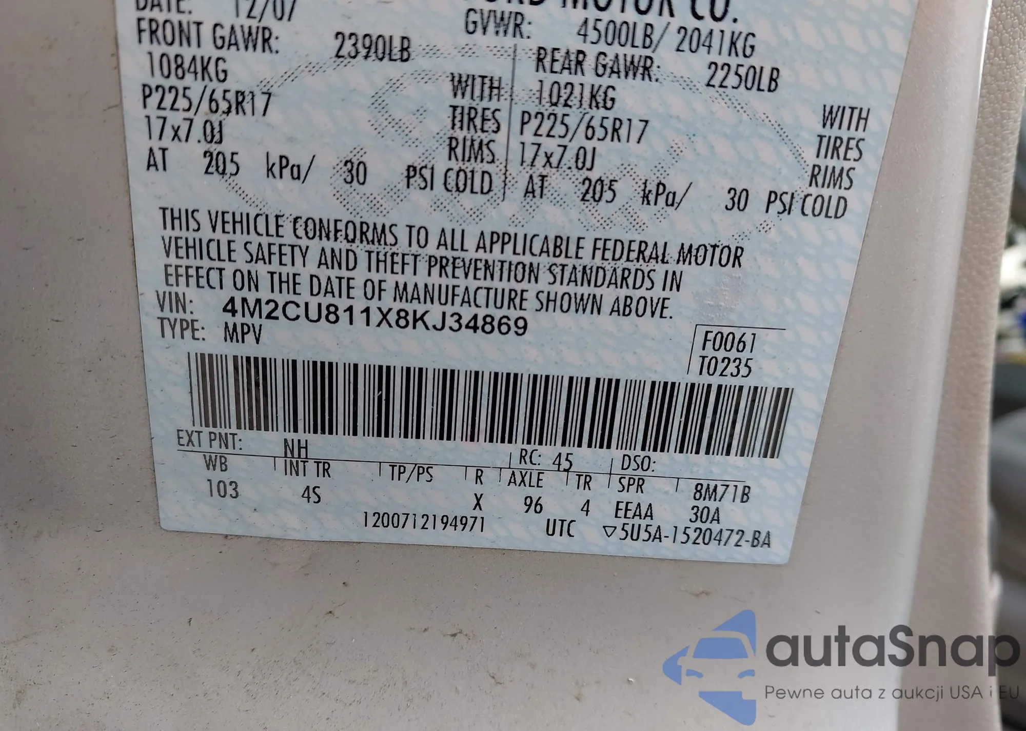 • VIN 4M2CU811X8KJ34869