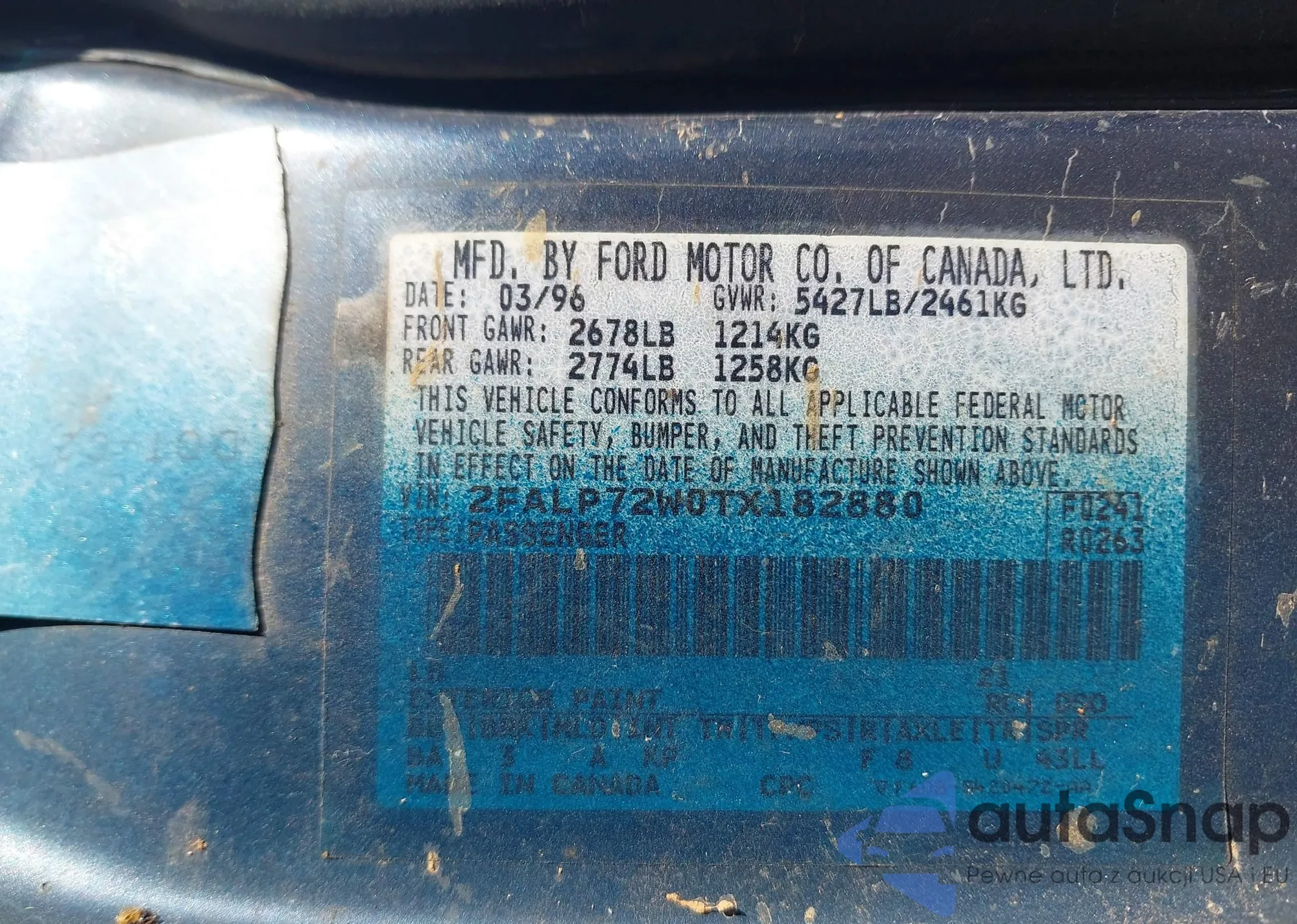 • VIN 2FALP72W0TX182880