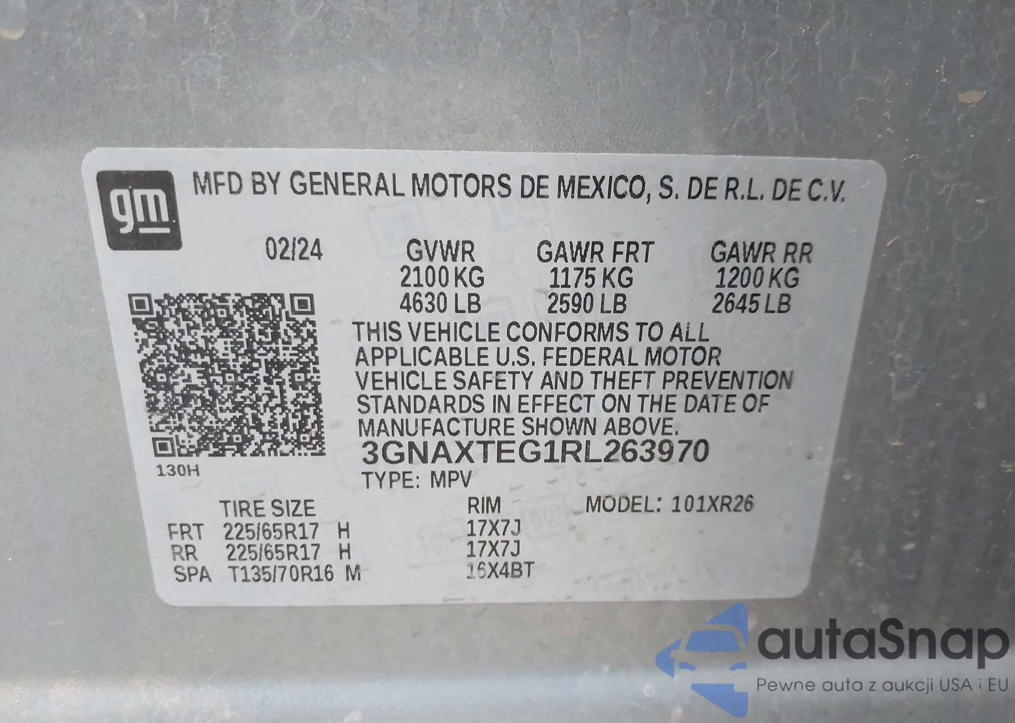 LOT: 43734053 VIN: 3GNAXTEG1RL263970