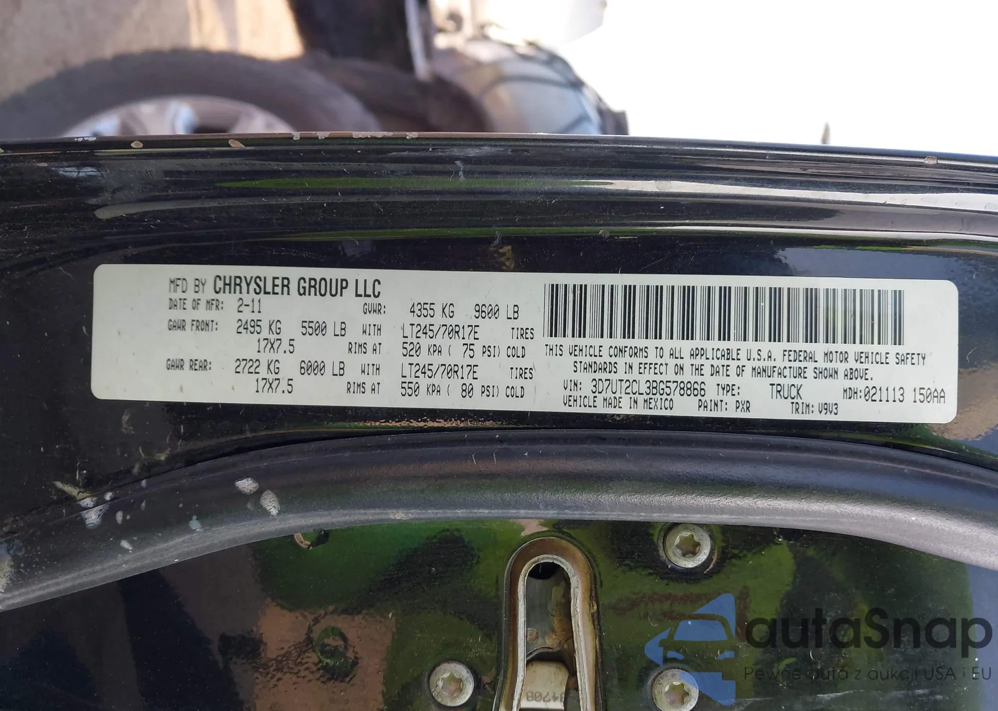 • VIN 3D7UT2CL3BG578866
