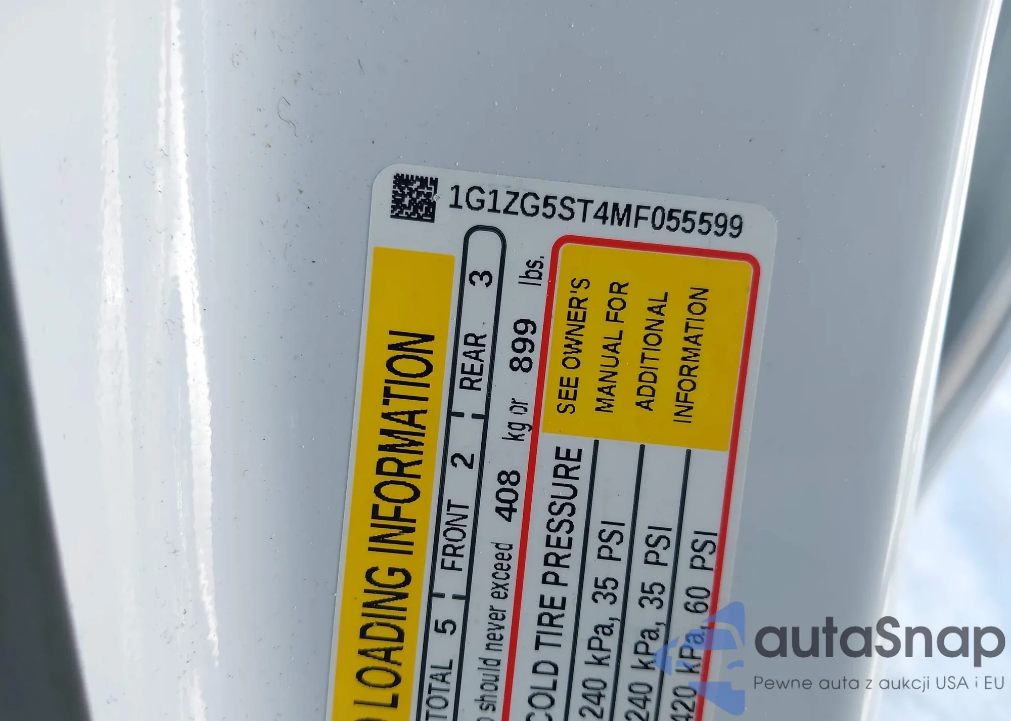 • VIN 1G1ZG5ST4MF055599