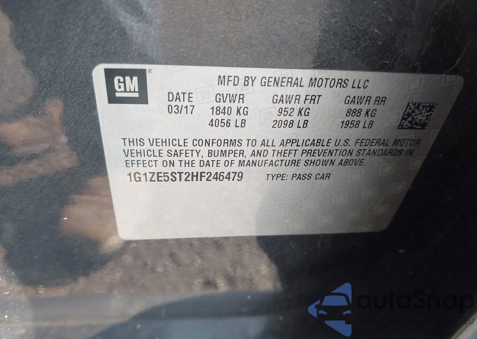 • VIN 1G1ZE5ST2HF246479