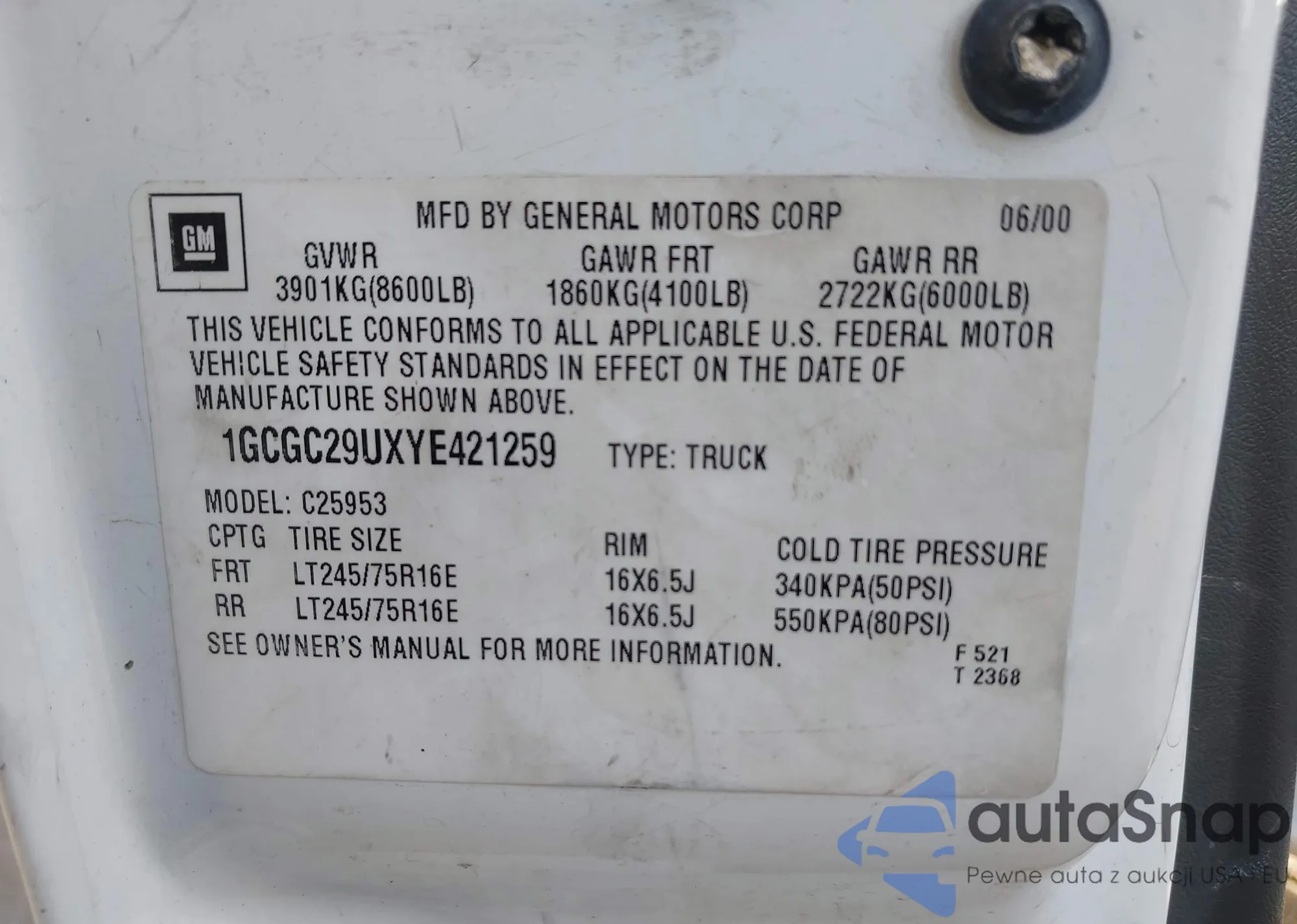 LOT: 44164368 VIN: 1GCCS19W328186769