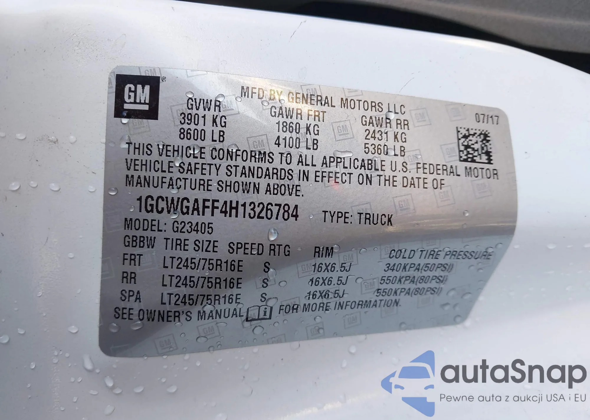 • VIN 1GCWGAFF4H1326784