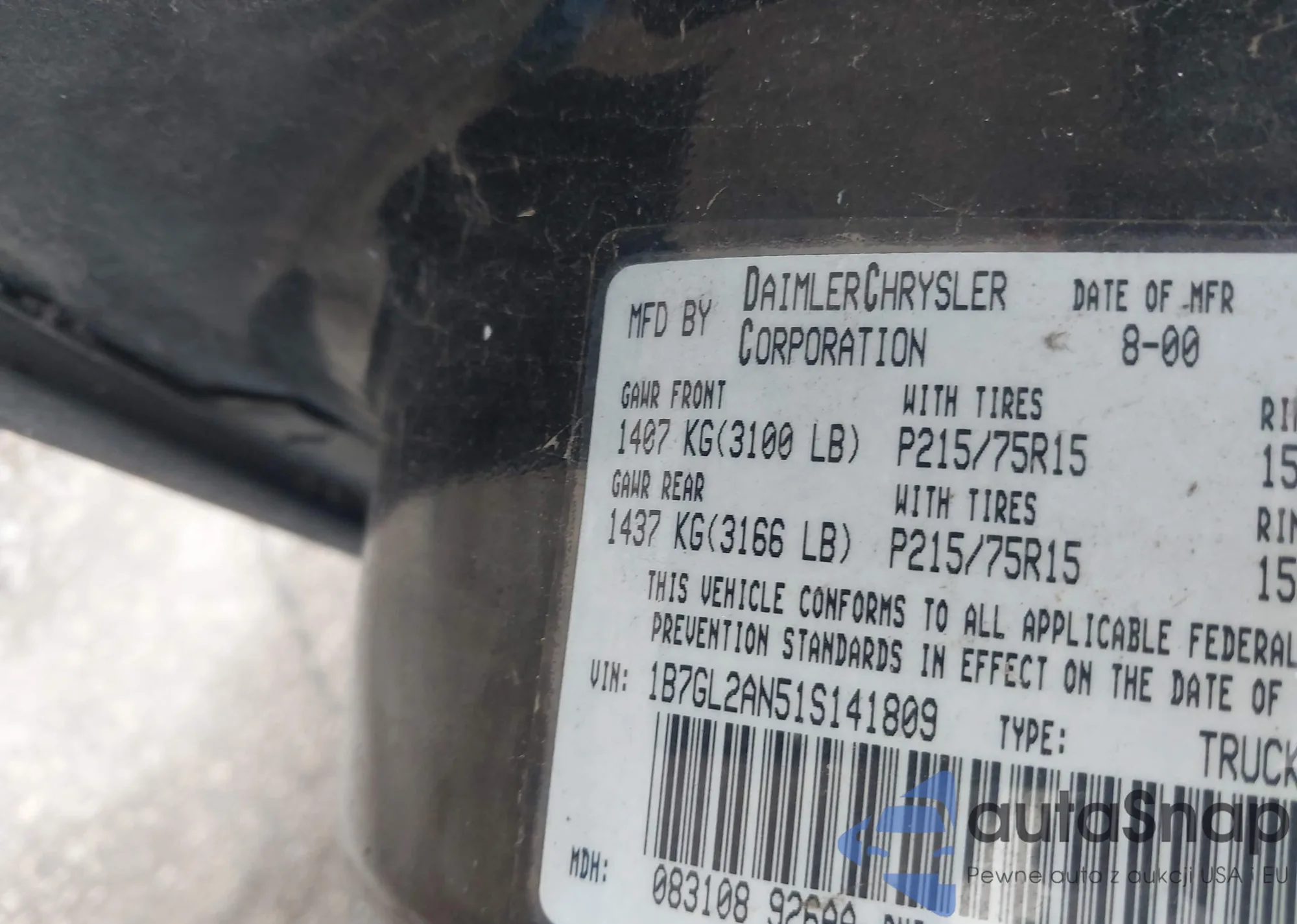 • VIN 1B7GL2AN51S141809