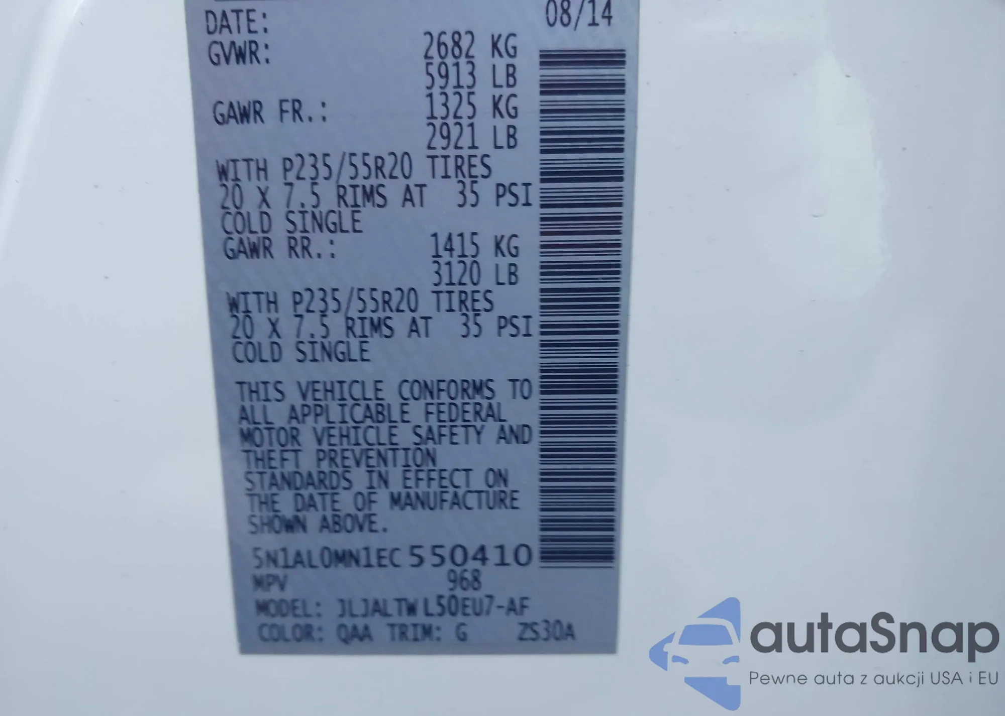 • VIN 5N1AL0MN1EC550410