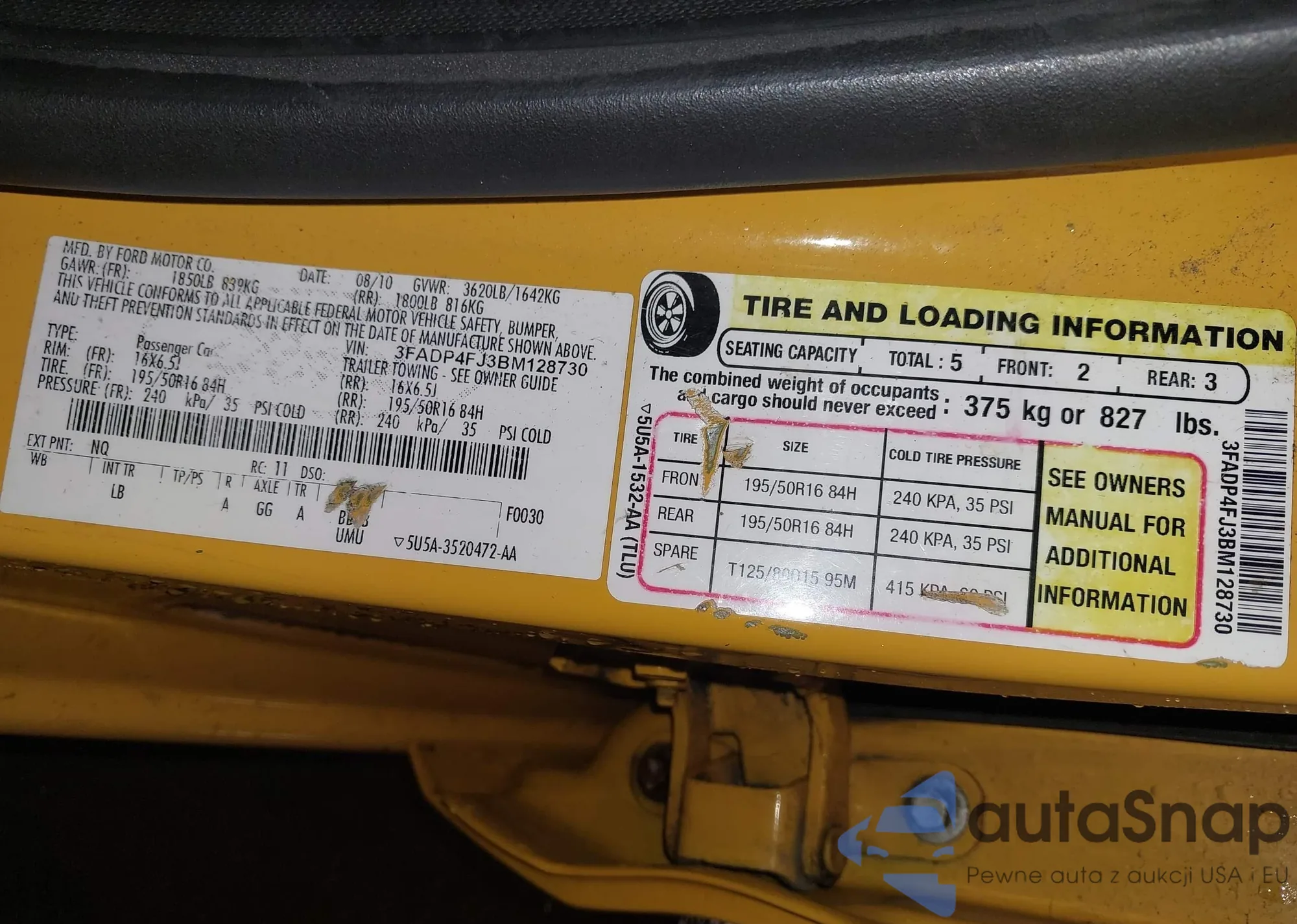 • VIN 3FADP4FJ3BM128730