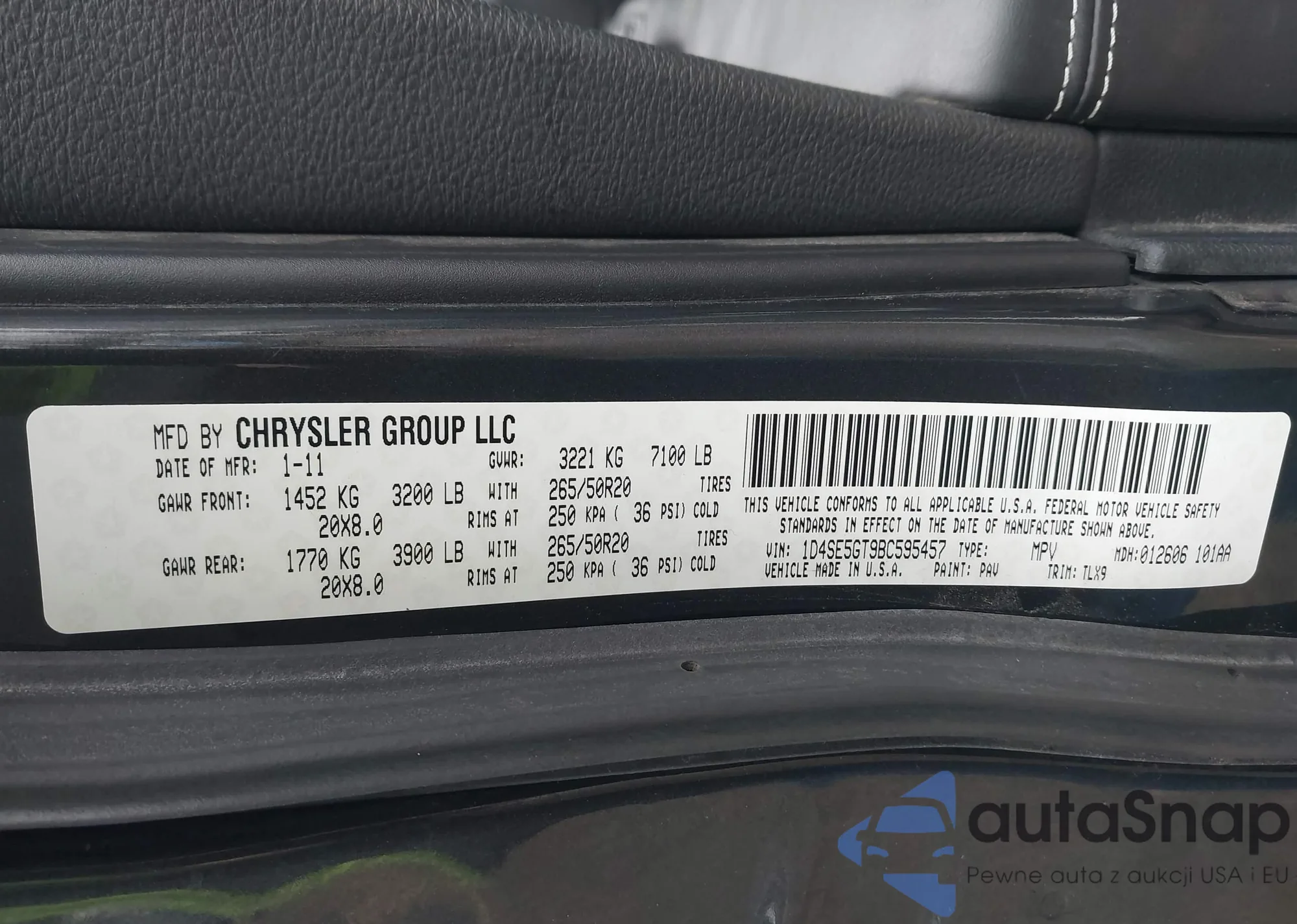 • VIN 1D4SE5GT9BC595457