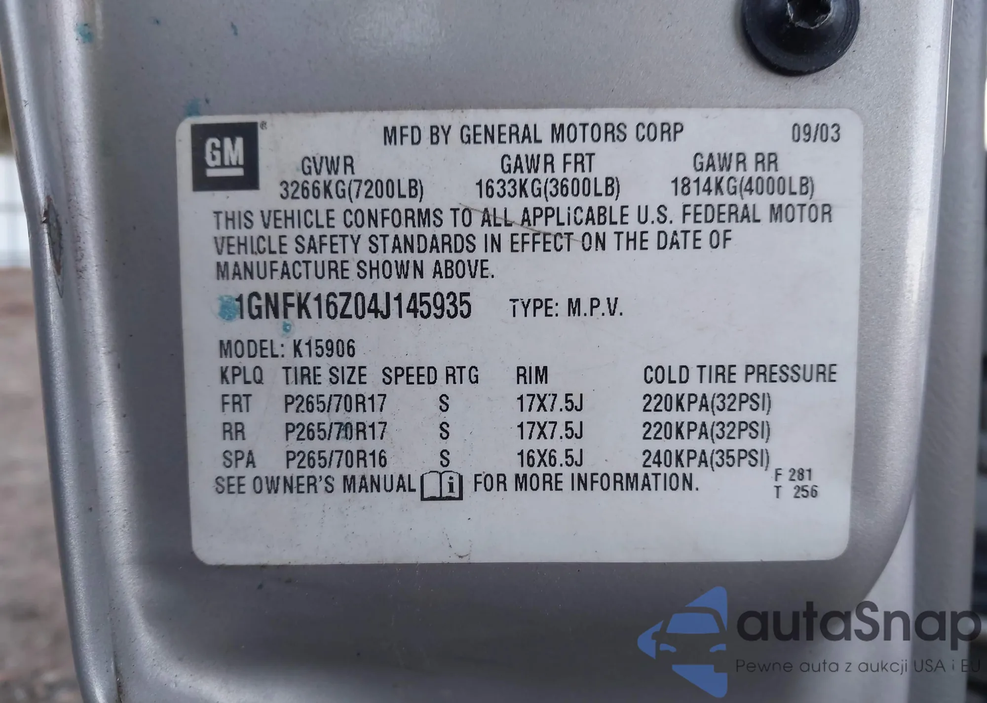 LOT: 43866754 VIN: 1GNFK16Z04J145935