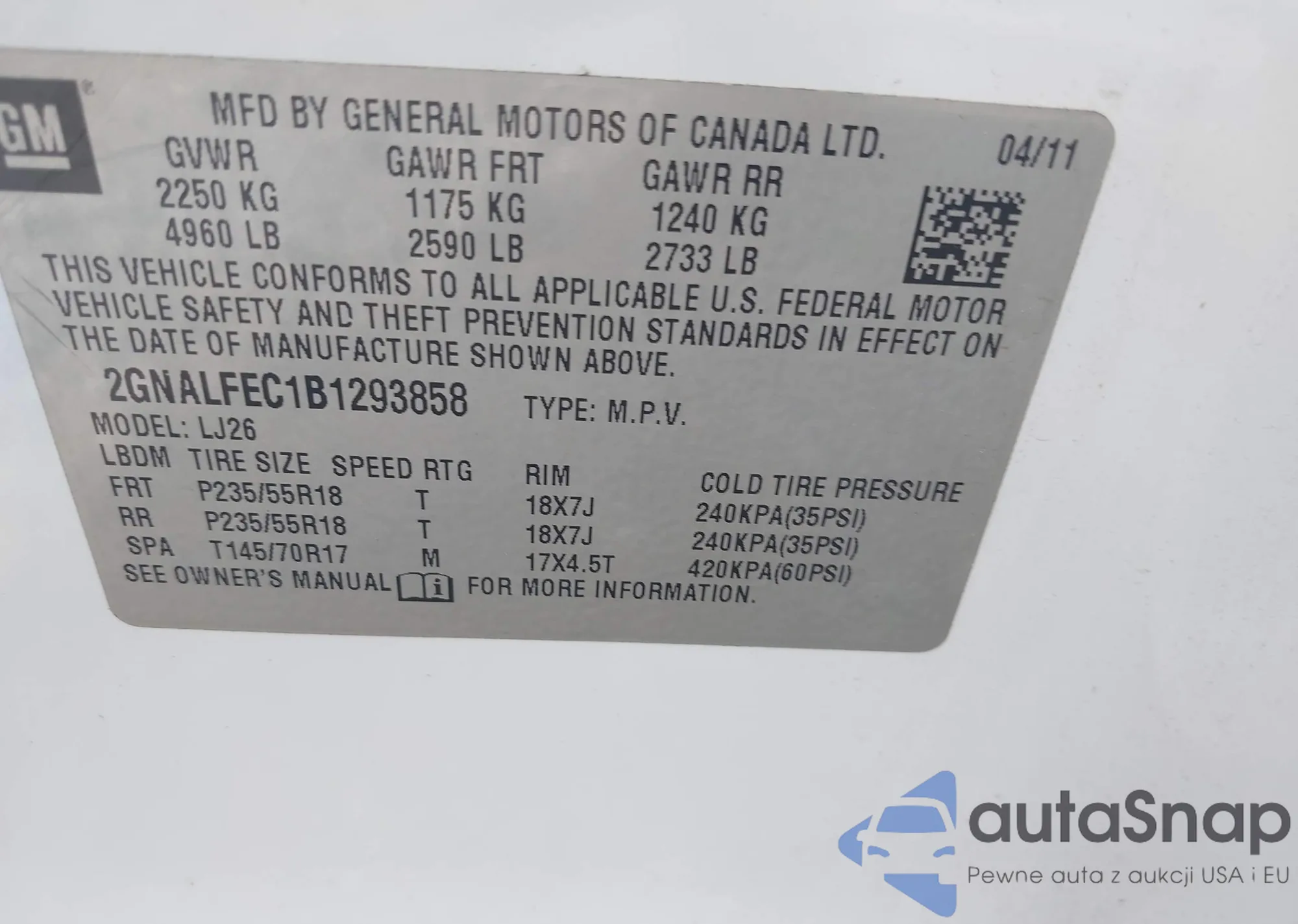 • VIN 2GNALFEC1B1293858