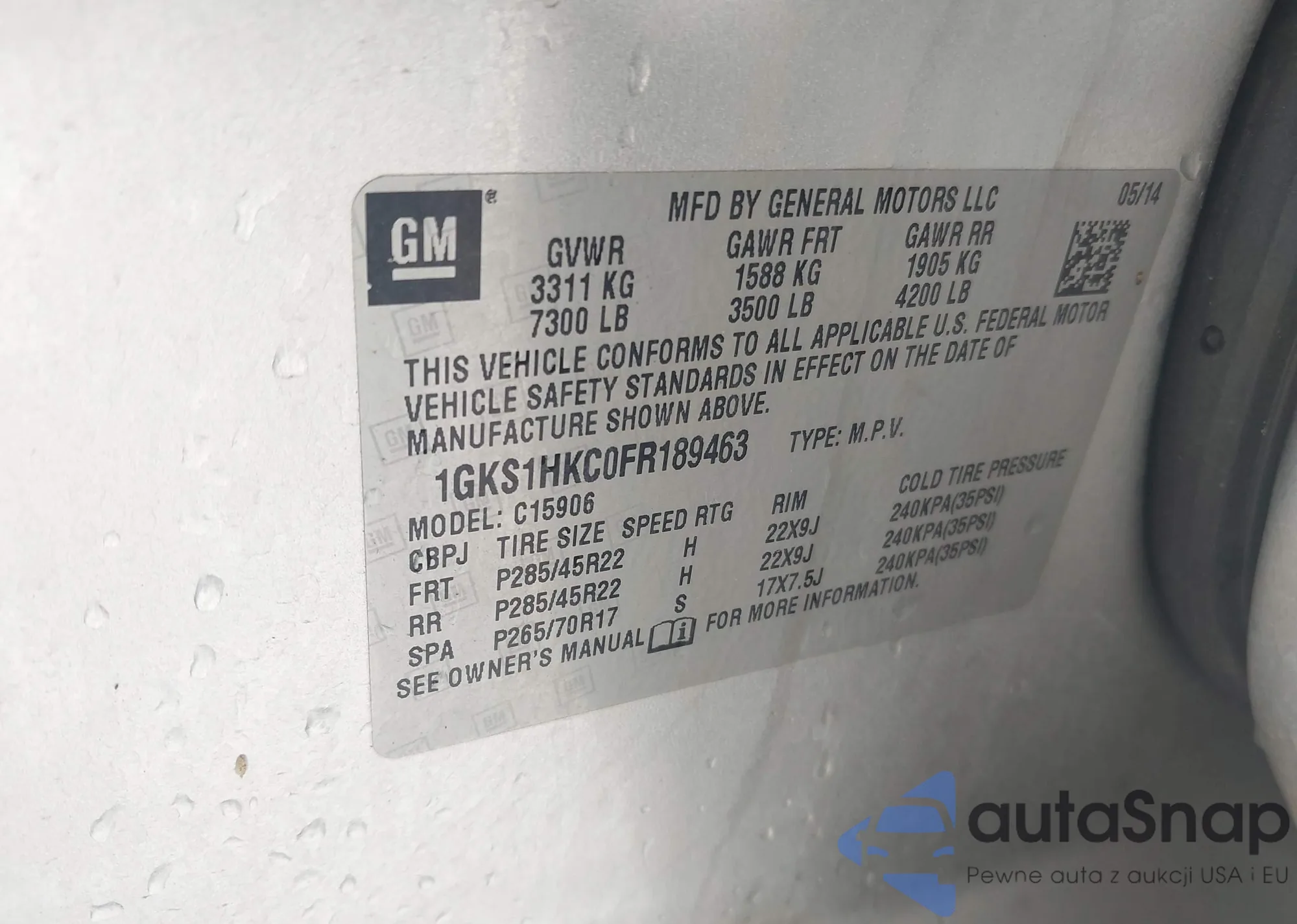 LOT: 44163839 VIN: 1GKS1HKC0FR189463