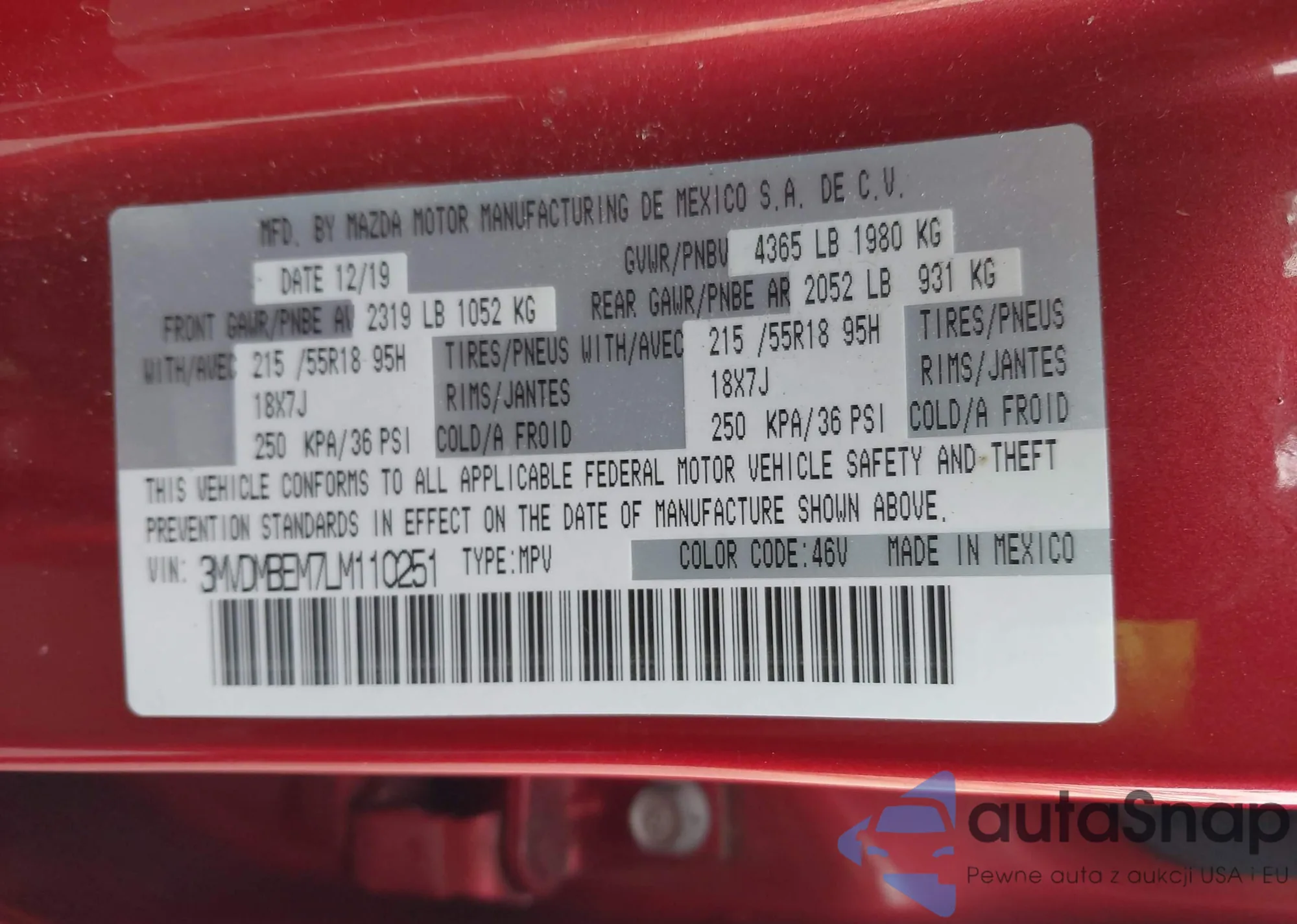 • VIN 3MVDMBEM7LM110251