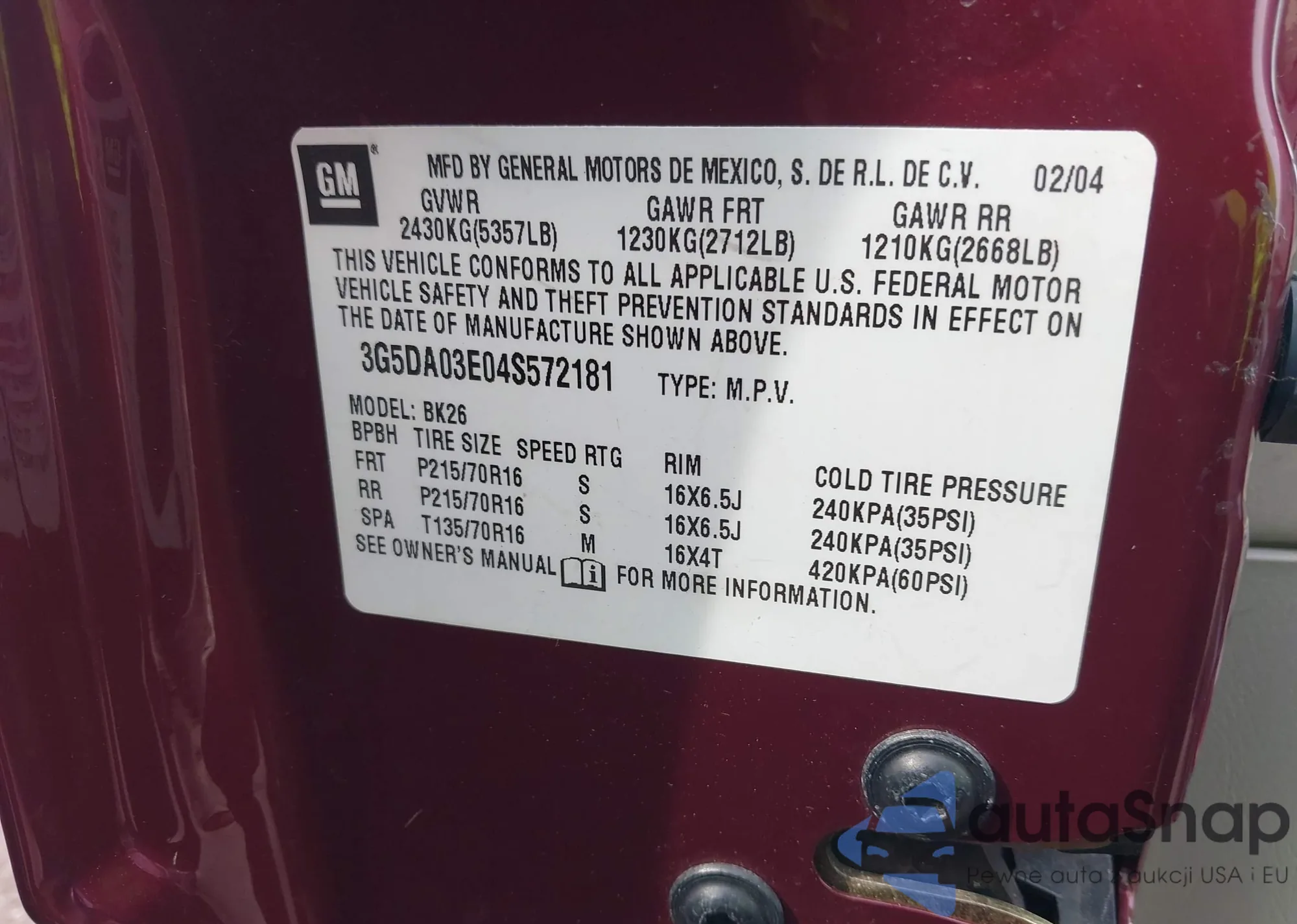 • VIN 3G5DA03E04S572181
