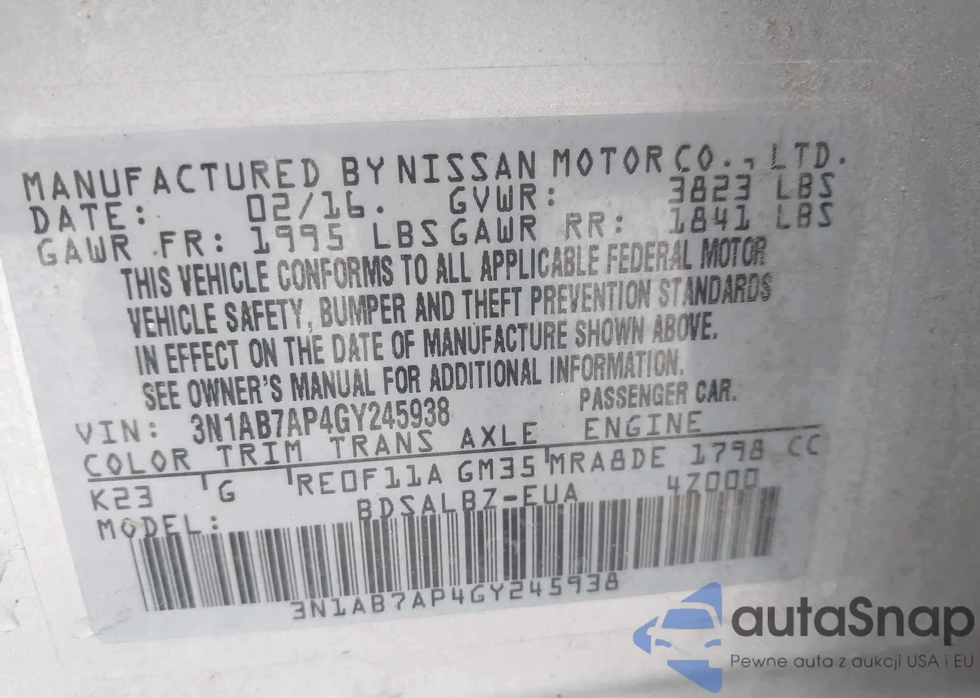 • VIN 3N1AB7AP4GY245938