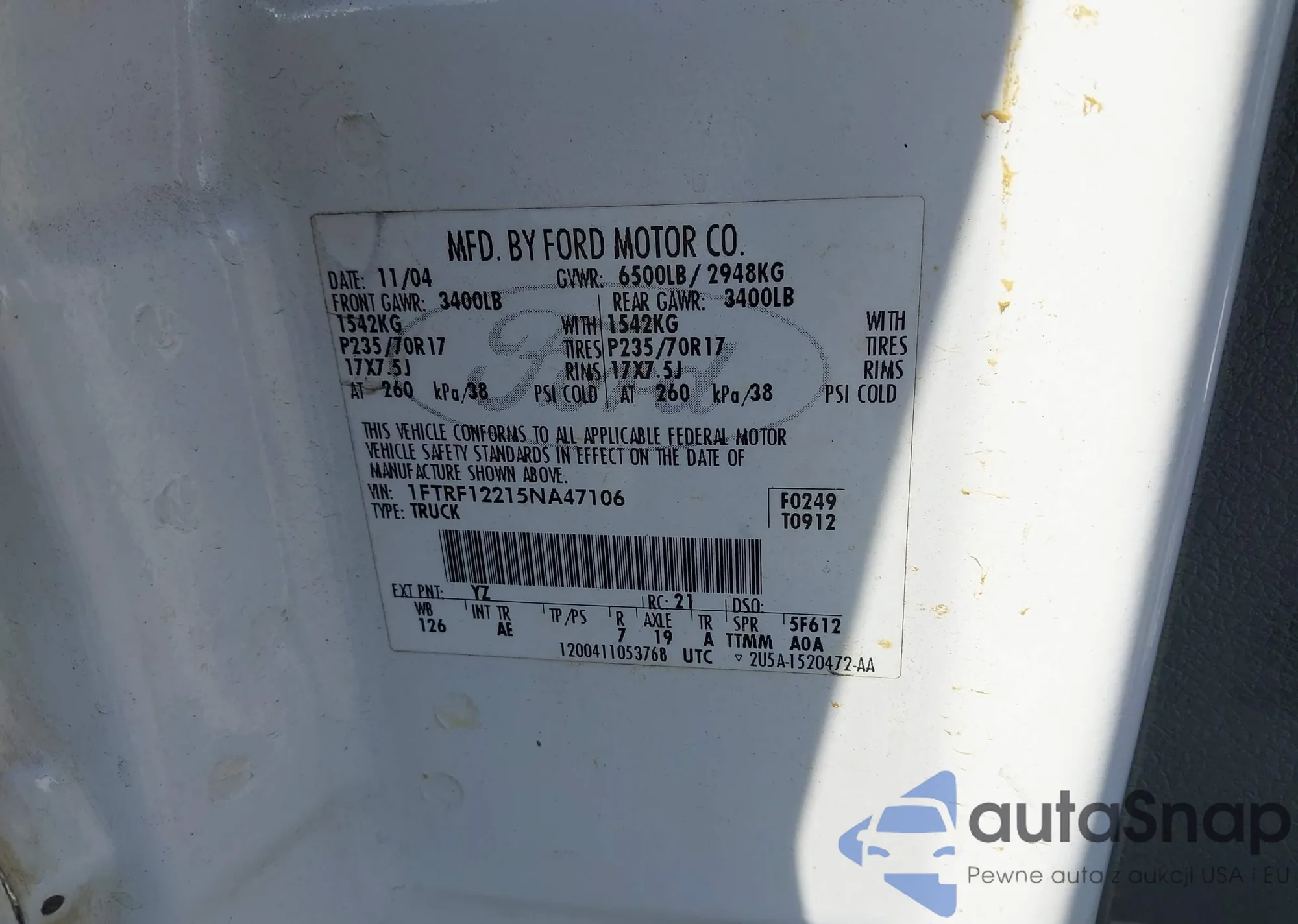 • VIN 1FTRF12215NA47106