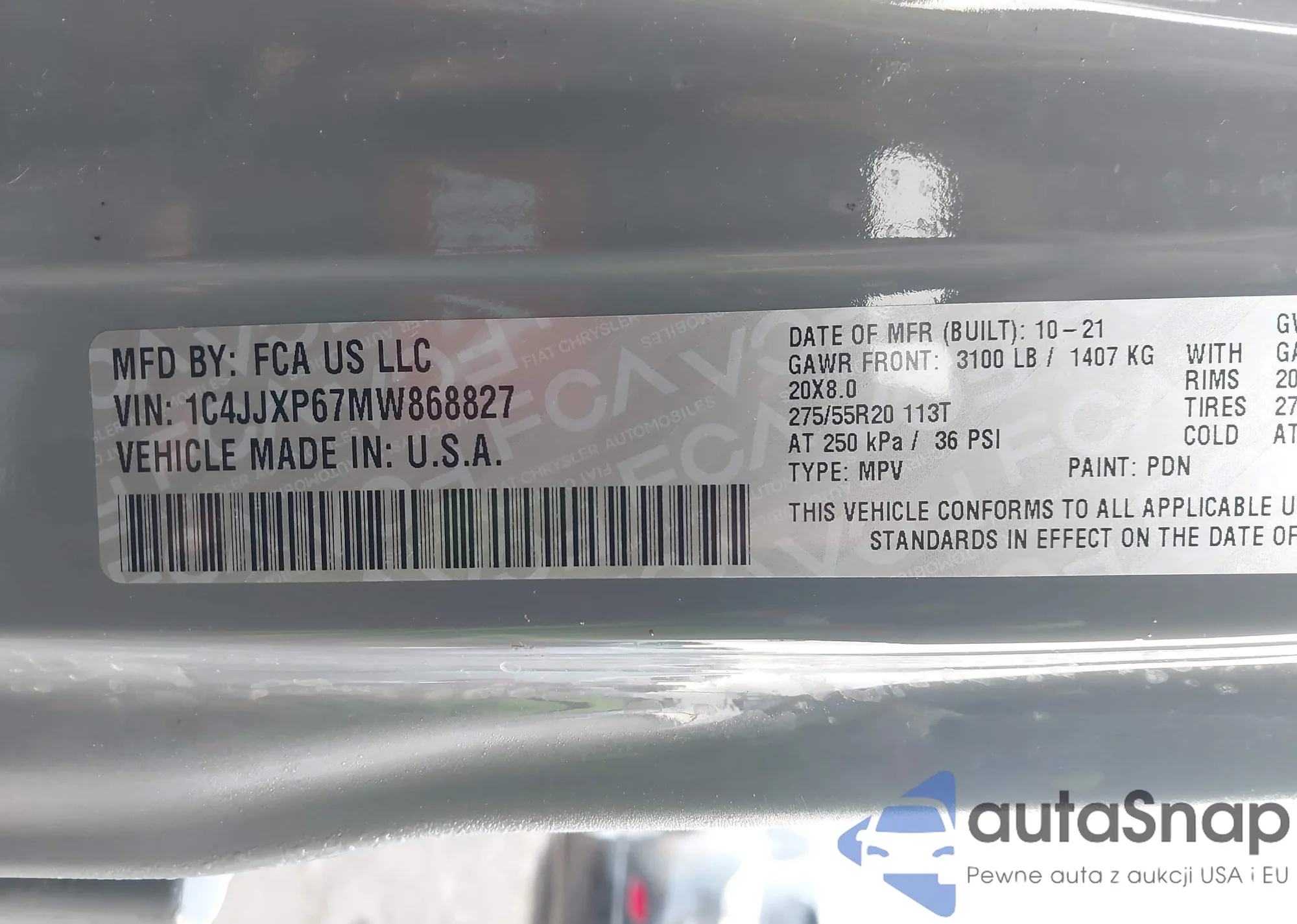 • VIN 1C4JJXP67MW868827