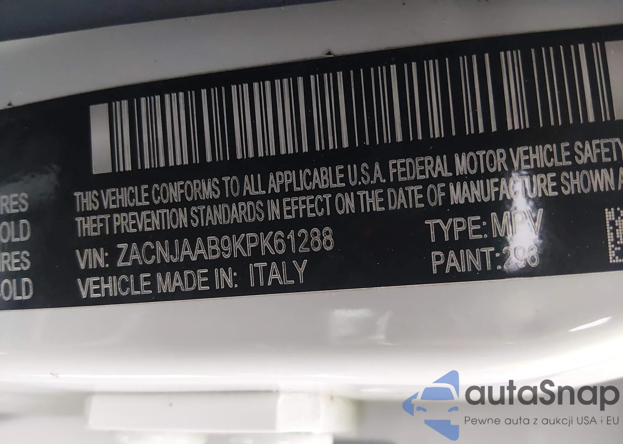 • VIN ZACNJAAB9KPK61288