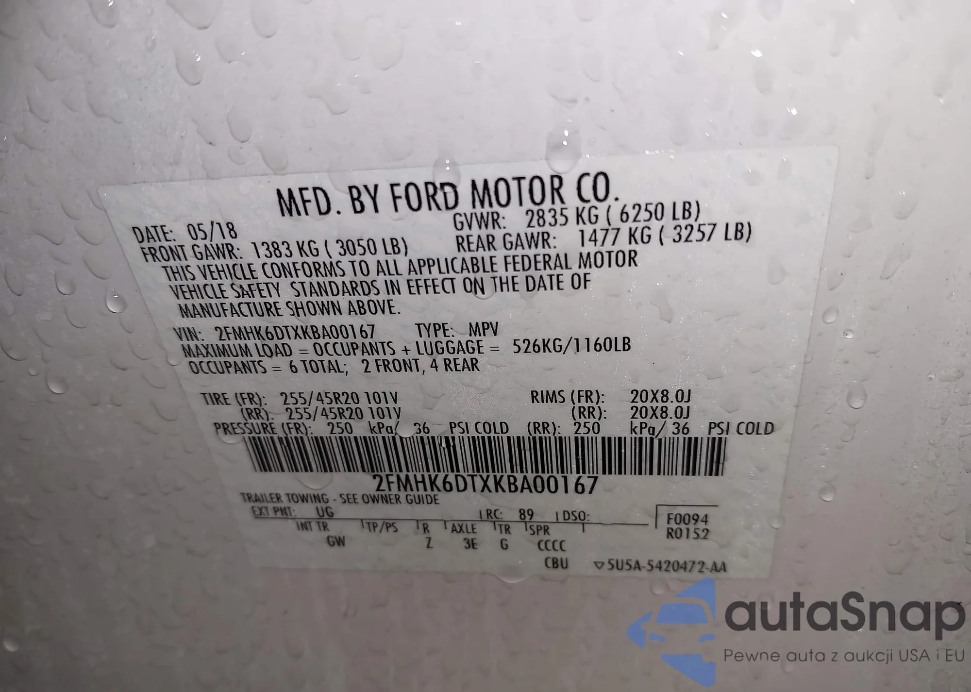 • VIN 2FMHK6DTXKBA00167