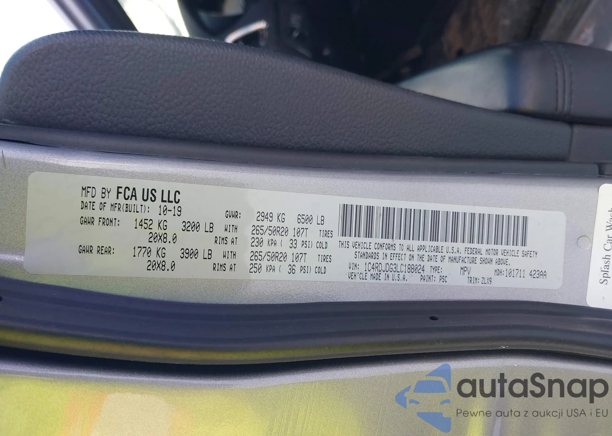 LOT: 44229618 VIN: 1C4RDJDG3LC188024