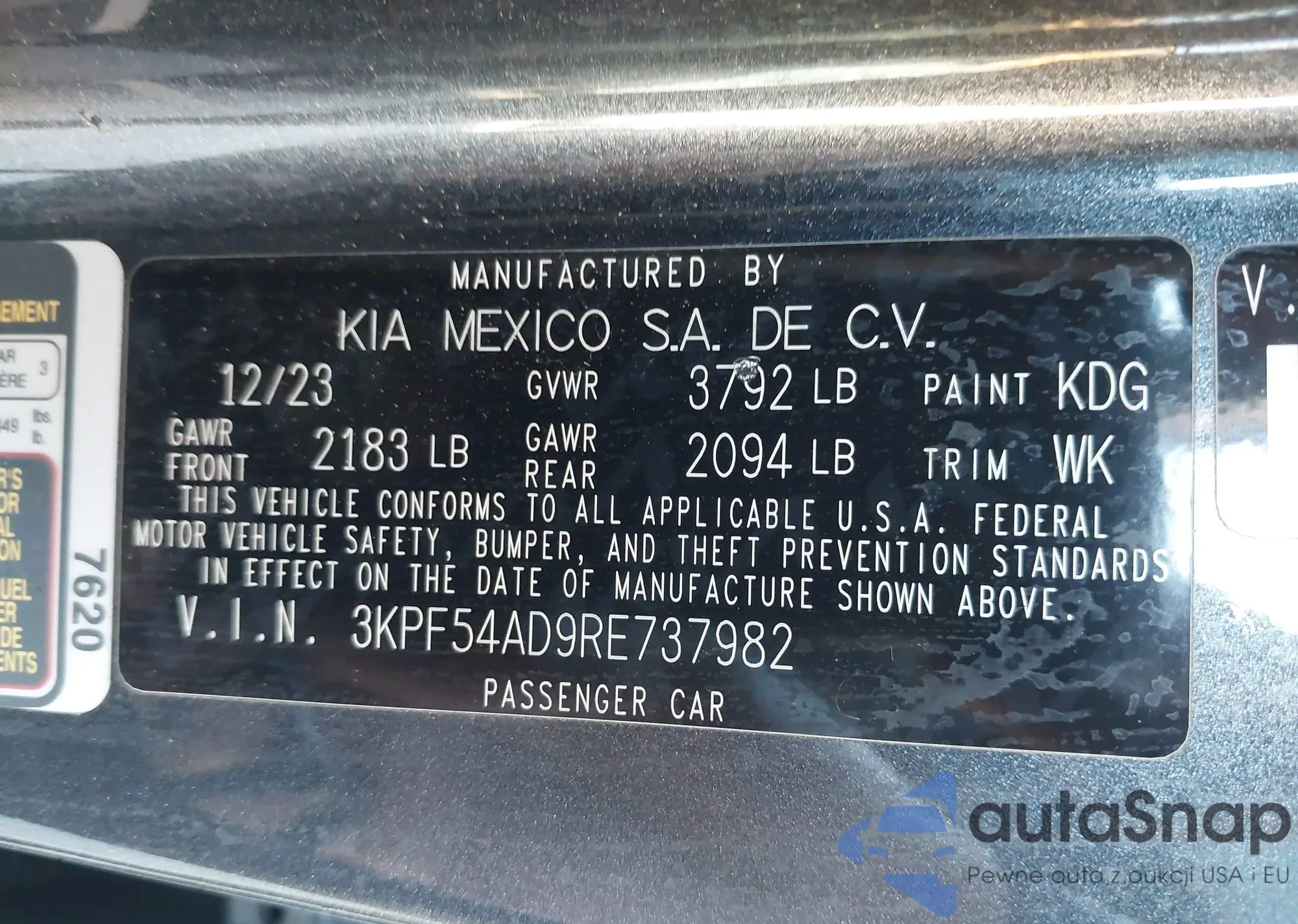 • VIN 3KPF54AD9RE737982