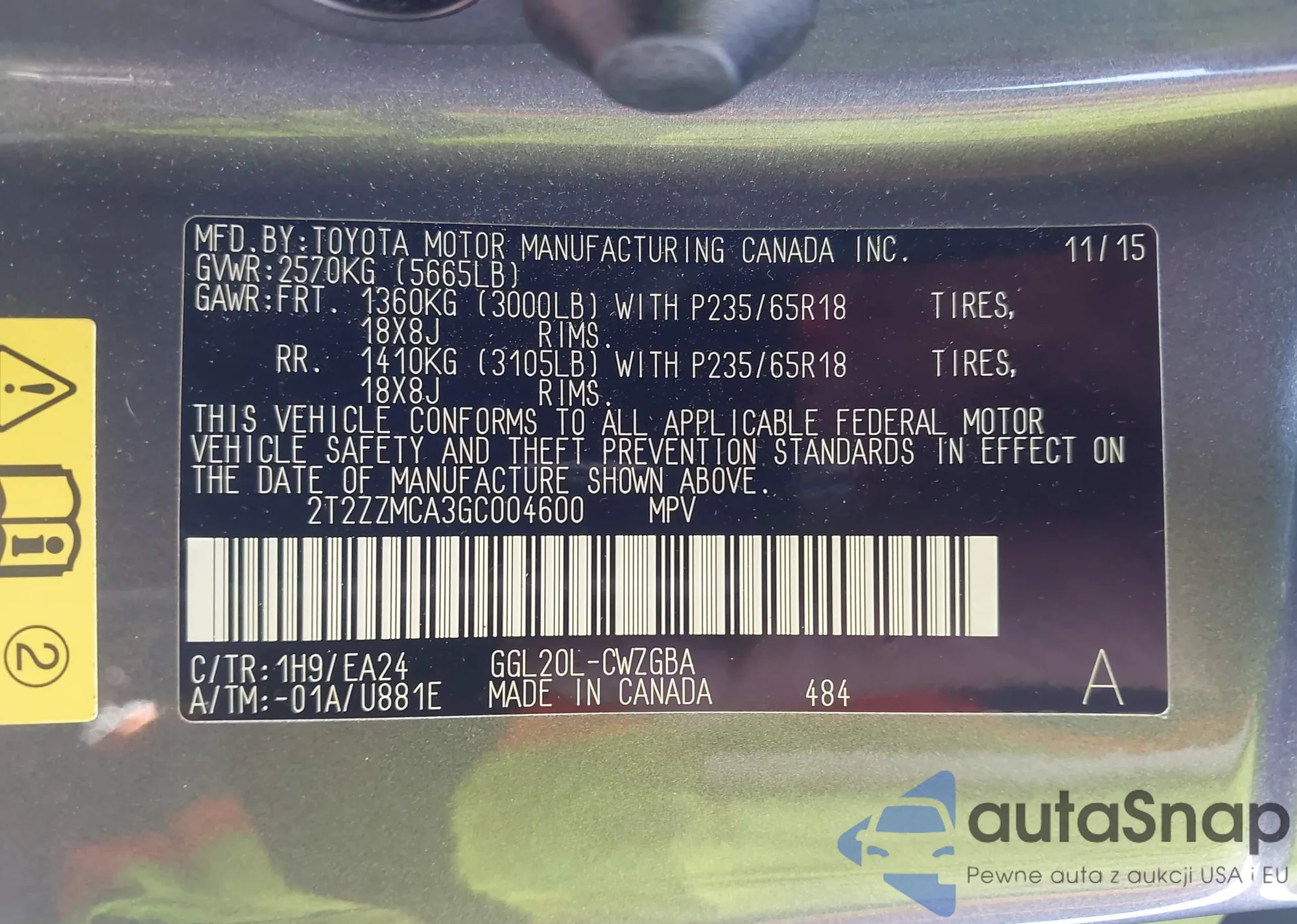 • VIN 2T2ZZMCA3GC004600