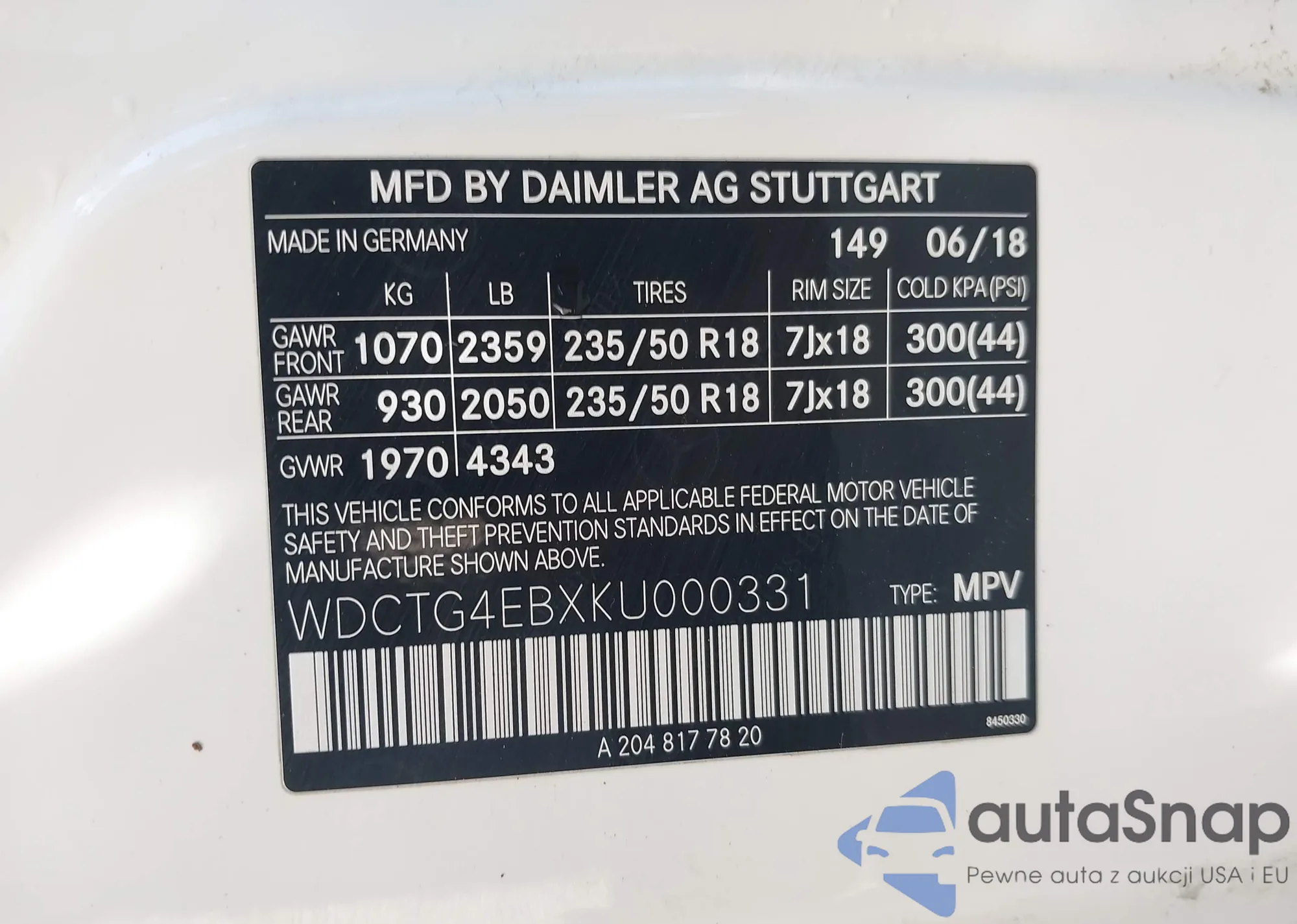 • VIN WDCTG4EBXKU000331