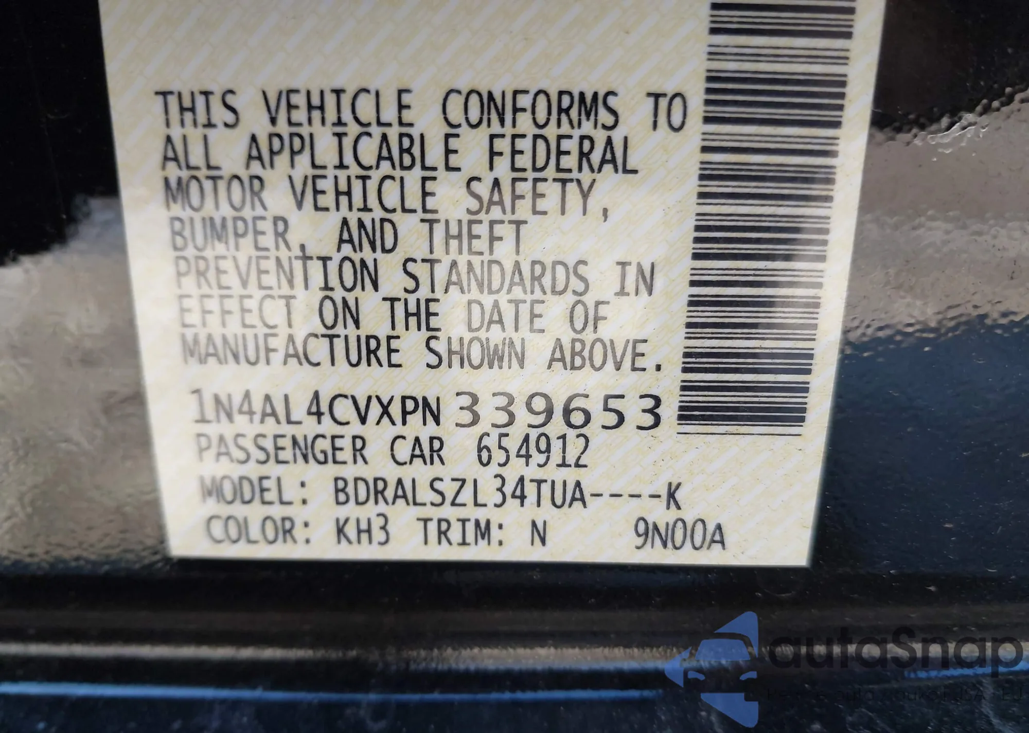 • VIN 1N4AL4CVXPN339653