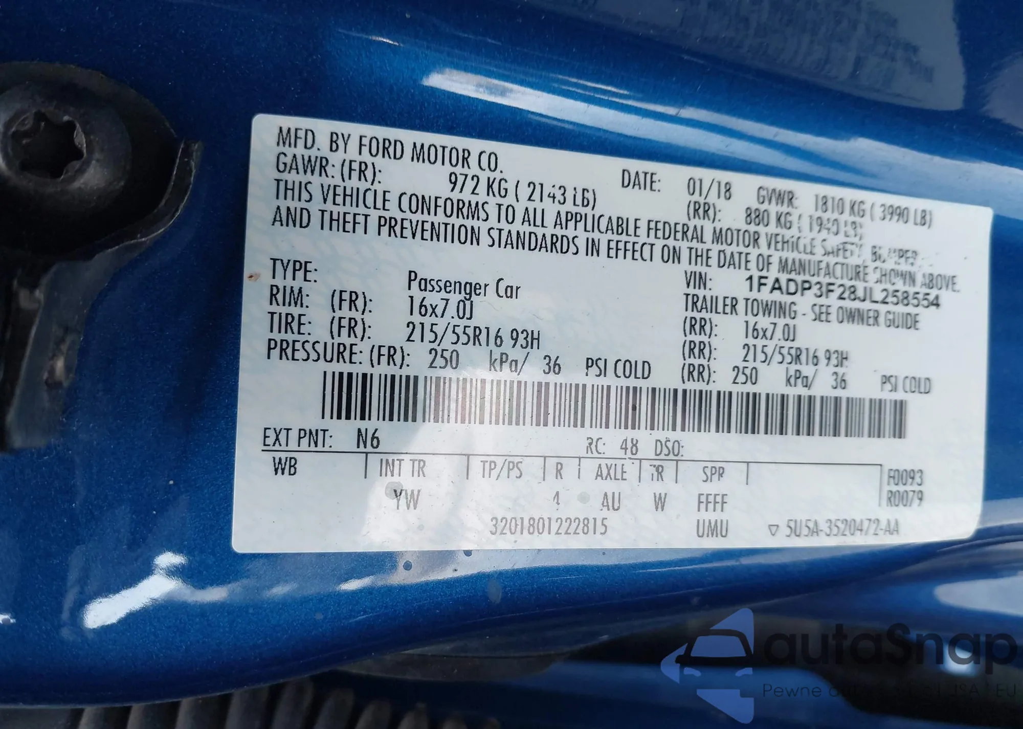 • VIN 1FADP3F2XGL298384