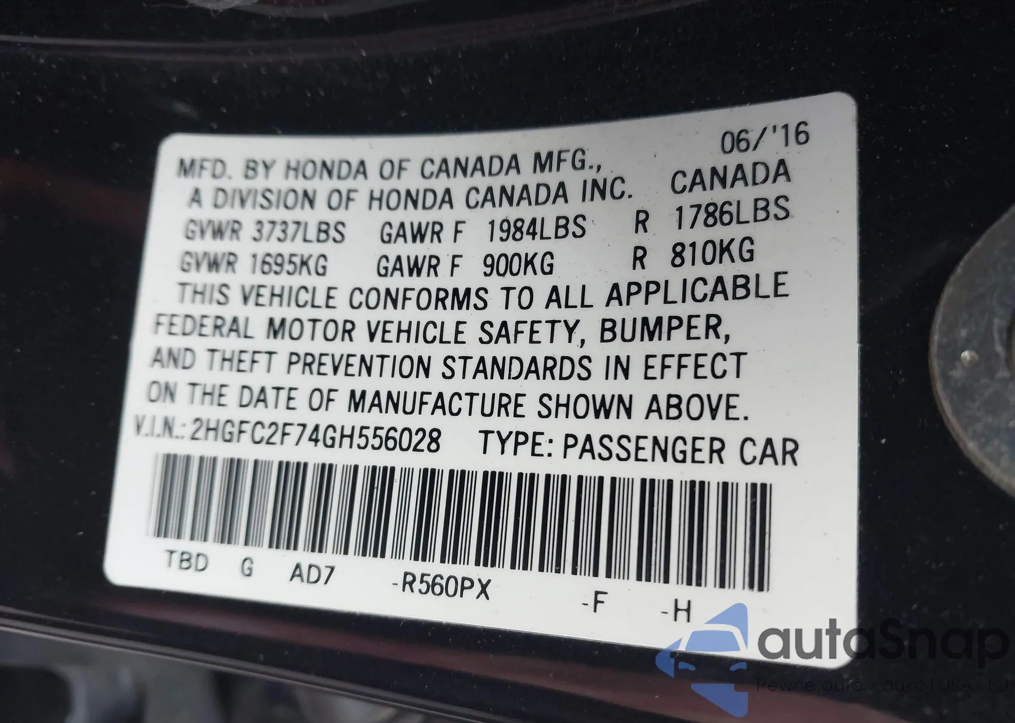 • VIN 2HGFC2F74GH556028