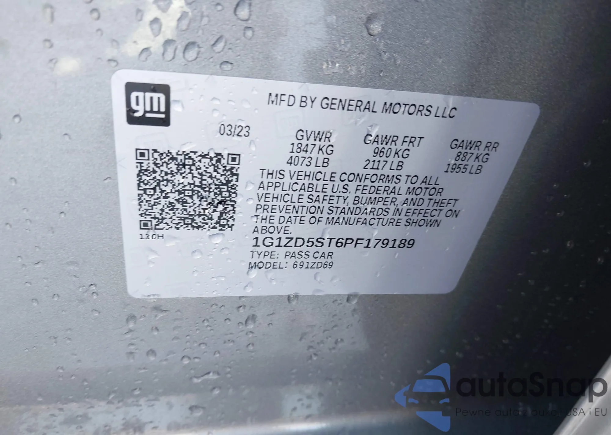 LOT: 43889552 VIN: 1G1ZD5ST6PF179189
