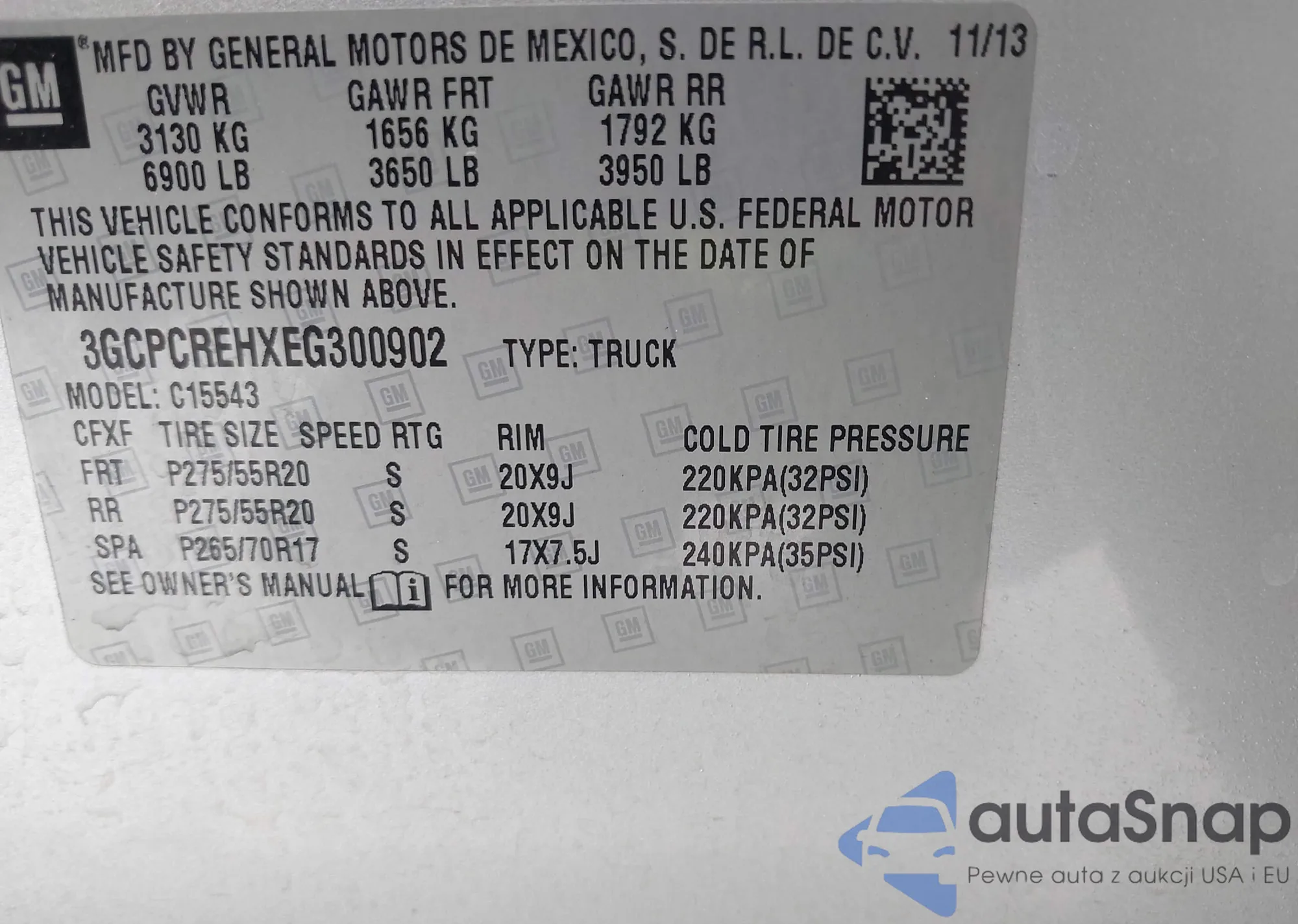• VIN 3GCPCREHXEG300902